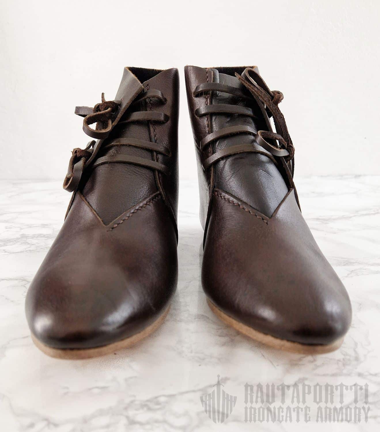 This is a common medieval shoe style from mainly 14th and 15th Century. However very similar shoes were worn from 1250 up to 16th century across Europe, so these shoes can be worn throughout medieval times.