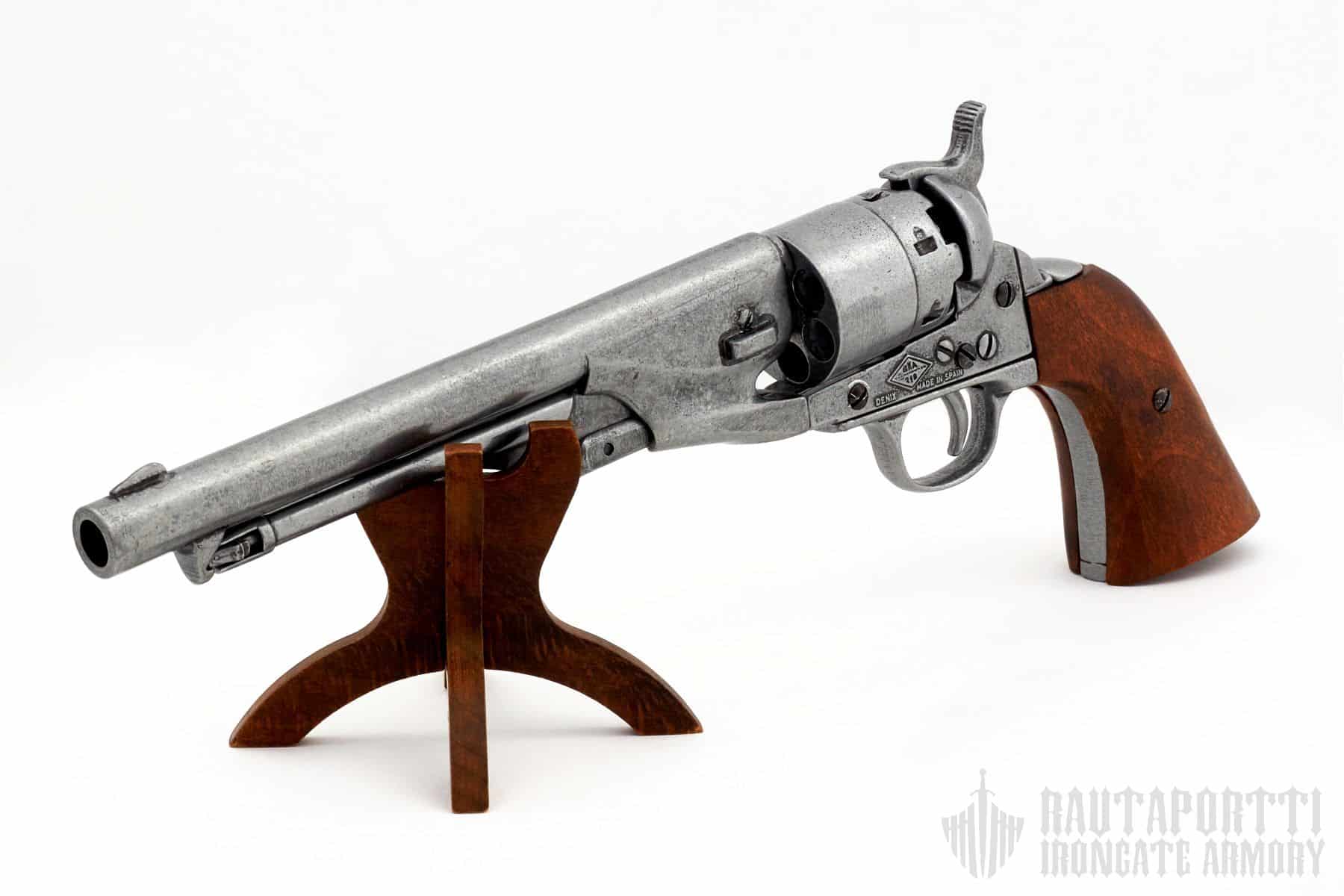 The Colt Army Model 1860 is an American Civil War –era revolver manufactured by S. Colt. It was a muzzle-loaded cap & ball .44-caliber revolver. It was favored as a side arm by cavalry, infantry, and artillery troops. It uses the same size frame as the .36 caliber 1851 Navy revolver.