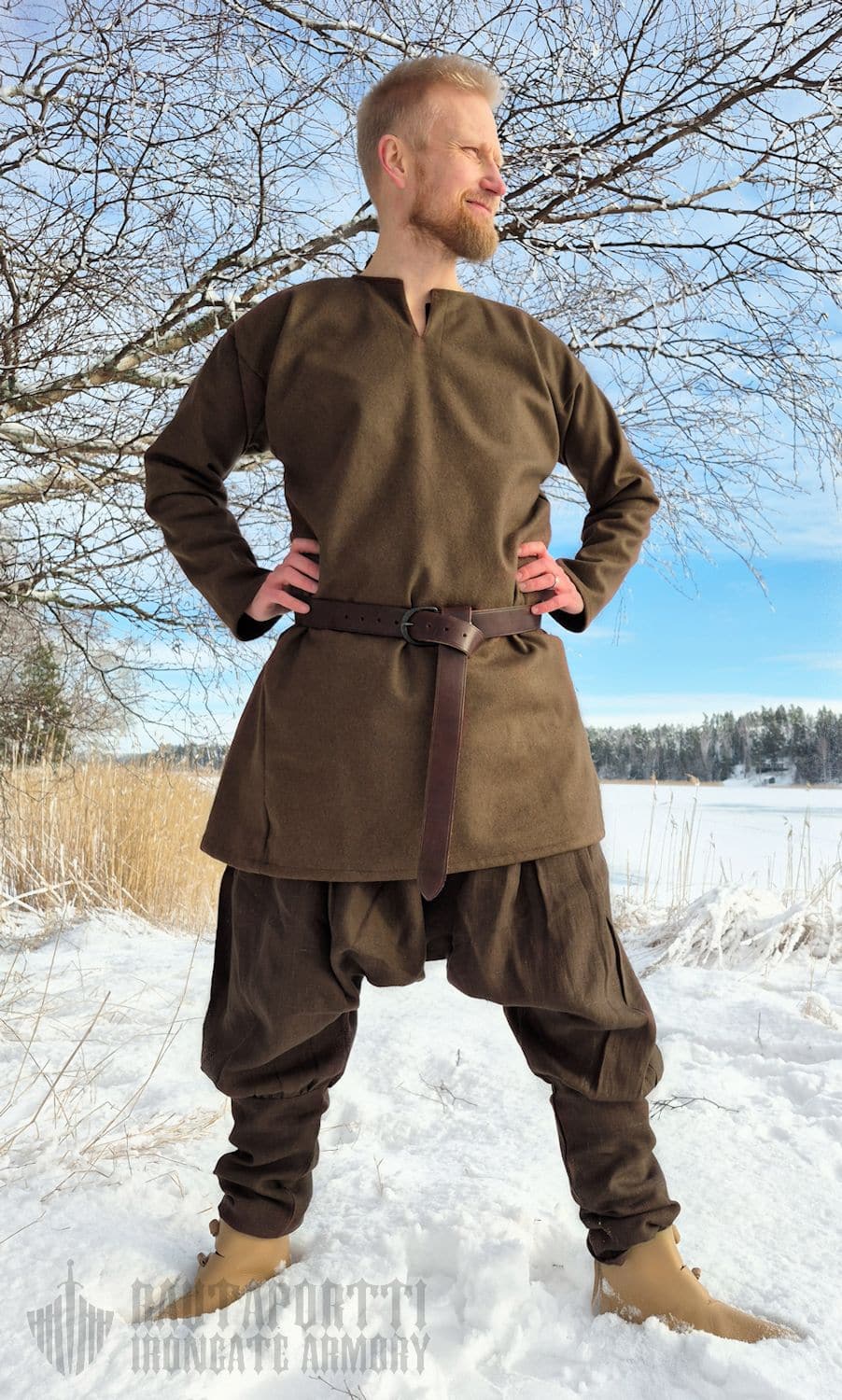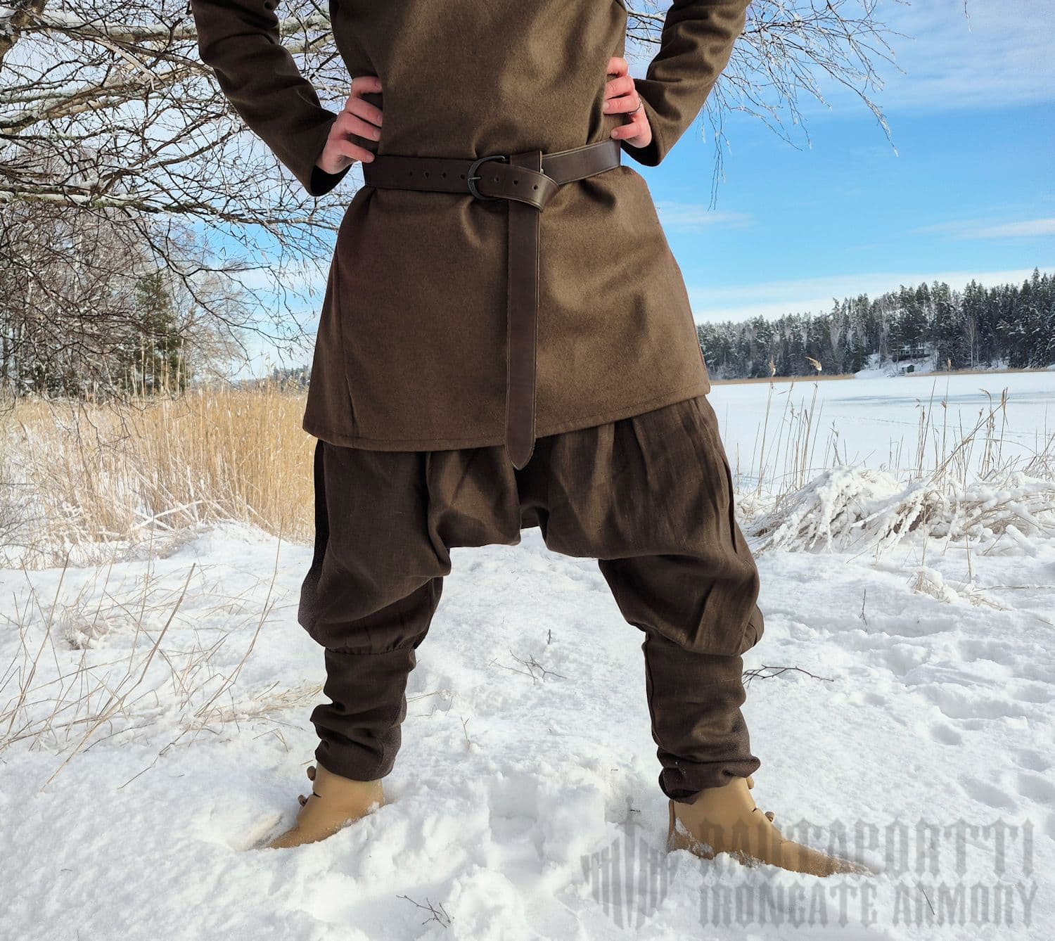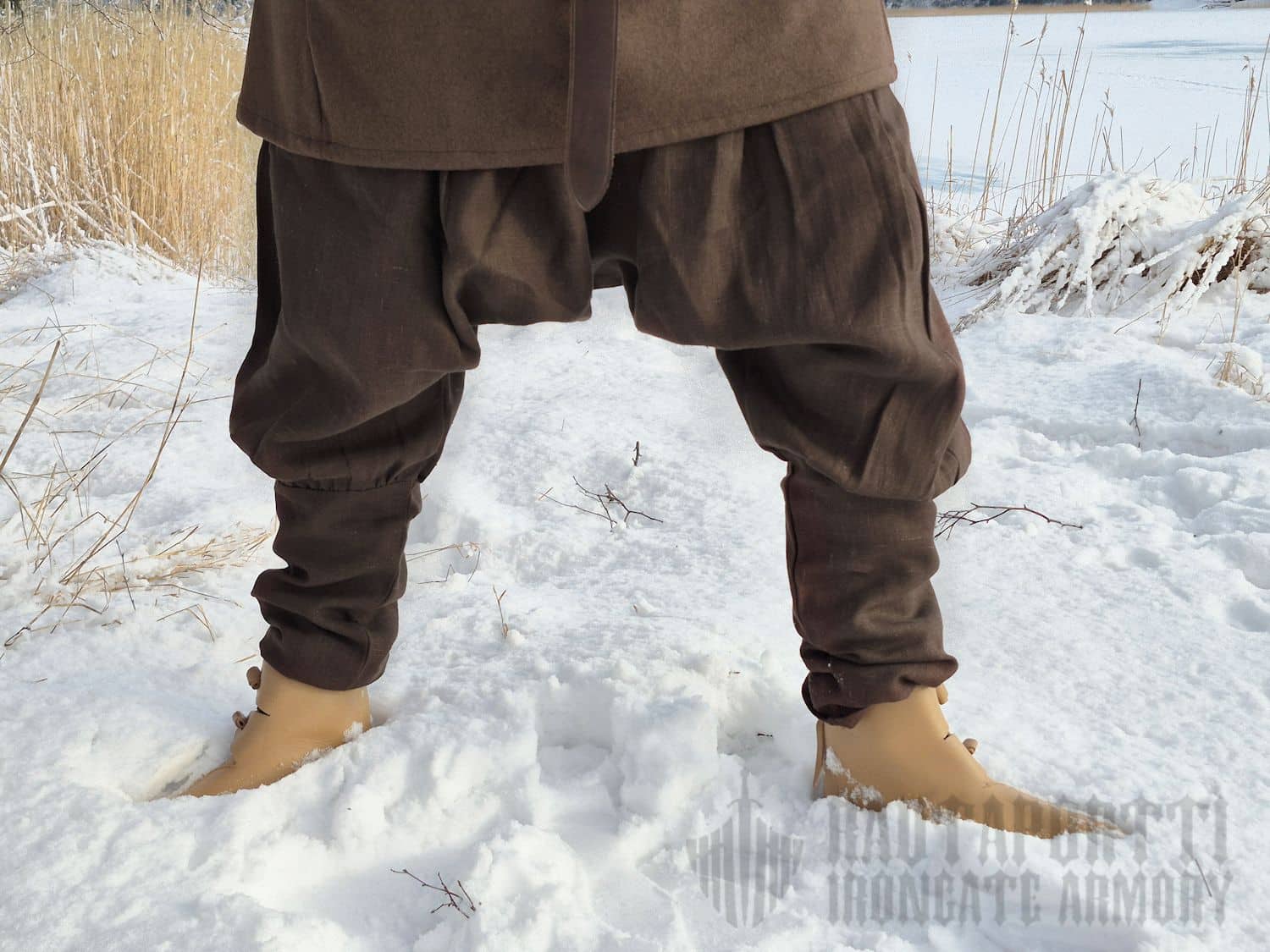 Every warrior needs practical and sturdy pants to withstand the rigors of combat. These Viking-Era pants are made of durable 100% linen to hold up years in active reenactment use. These knickerbocker-style pants are narrow and tight-fitting below your knee and wide and airy upwards from the knee. This allows a unique look with free leg movement.