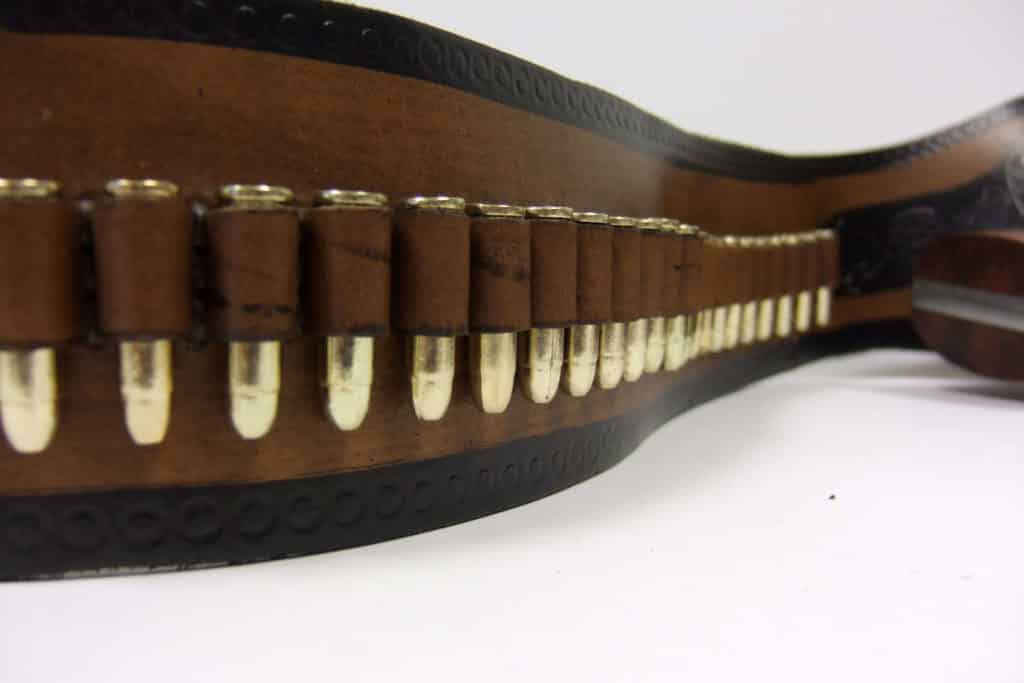 - Revolver decorative cartridges are made of cast metal and the gun belt is made of real leather