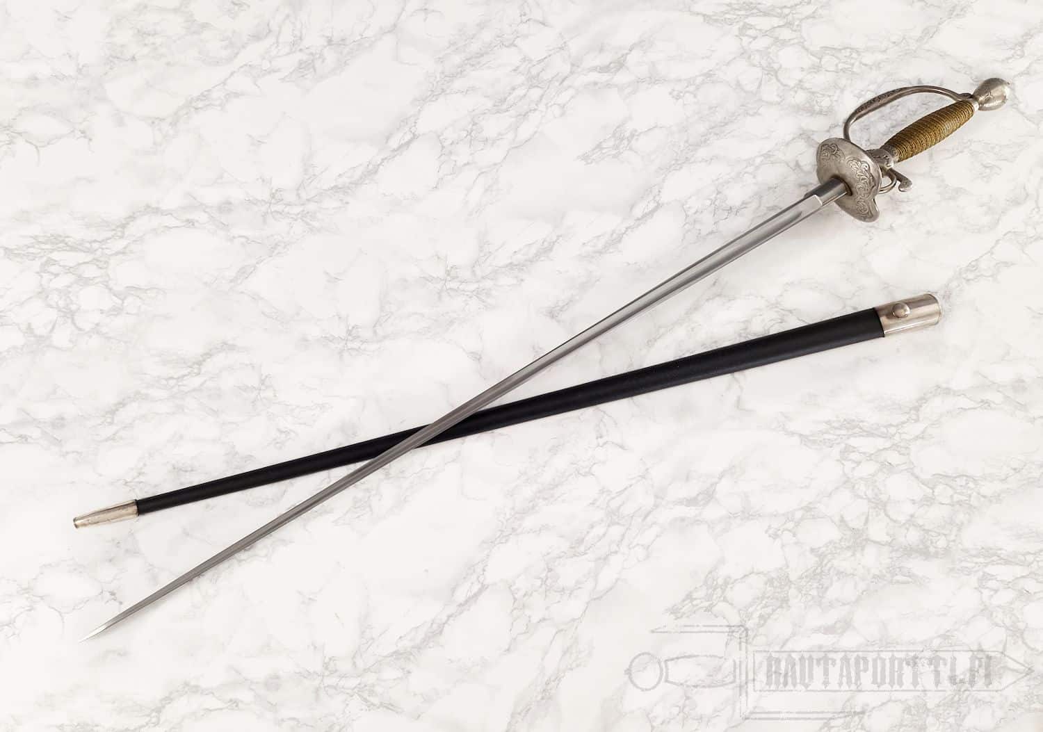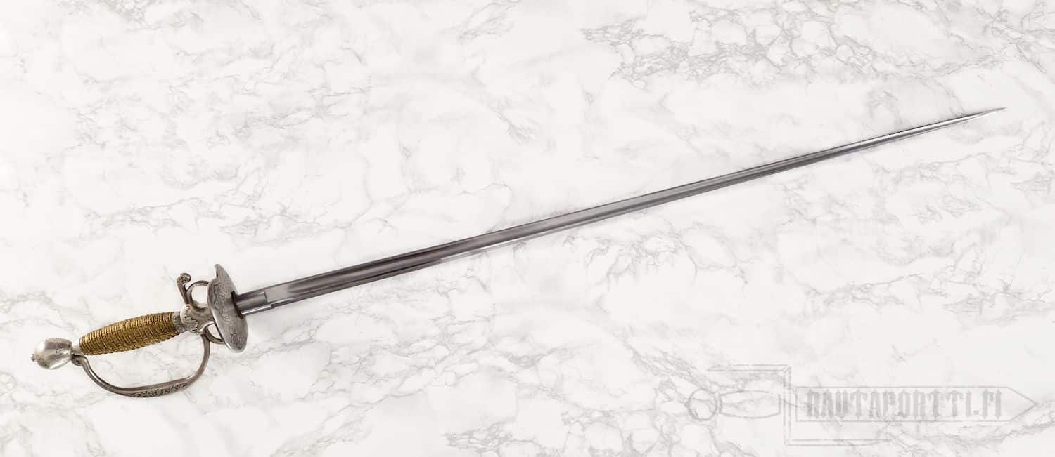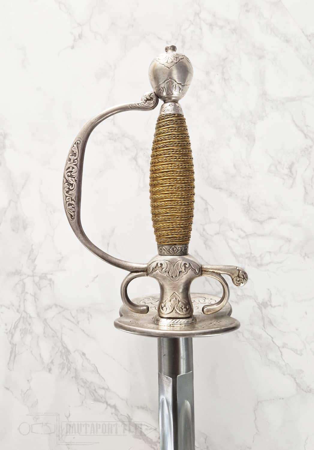 This Scottish Court Sword is quick and elegant. The original dates from the 1730’s and belonged to an officer in the army of Prince Charles Edward Stuart, or Bonnie Prince Charlie, at Culloden. There it would have seen the final decisive battle of the Jacobite rebellion in 1746 as an army of Highland clansmen fought the English troops. The Highlanders were disillusioned by the Acts of Union of 1706 which had largely displaced them and their ancient traditions from power and relevance as Scotland and England joined to form the United Kingdom. They were led by Bonnie Prince Charlie, who had arrived from France to claim the throne equipped with, among other supplies, 1800 broadswords. After a few promising battle victories the Battle of Culloden ended in the crushing of the Jacobites and their dreams. Within a few years from the battle the Highland way of life had been all but eradicated. Swords such as this still remind us of those last whispers of a by-gone era. The Battle of Culloden was the last pitched battle fought on British soil.