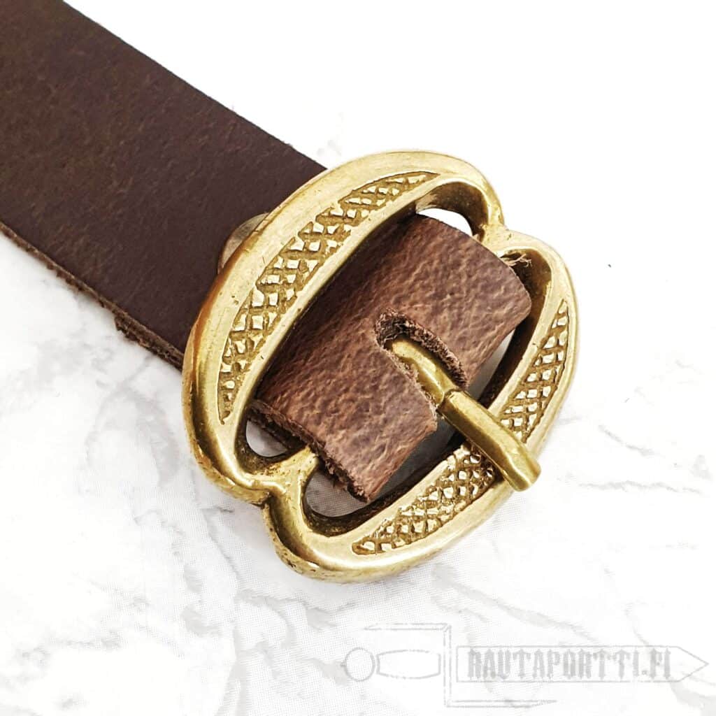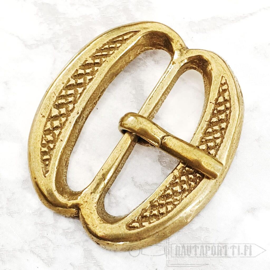 A decorated oval double buckle for different types of Do-It-Yourself -projects and repairs.