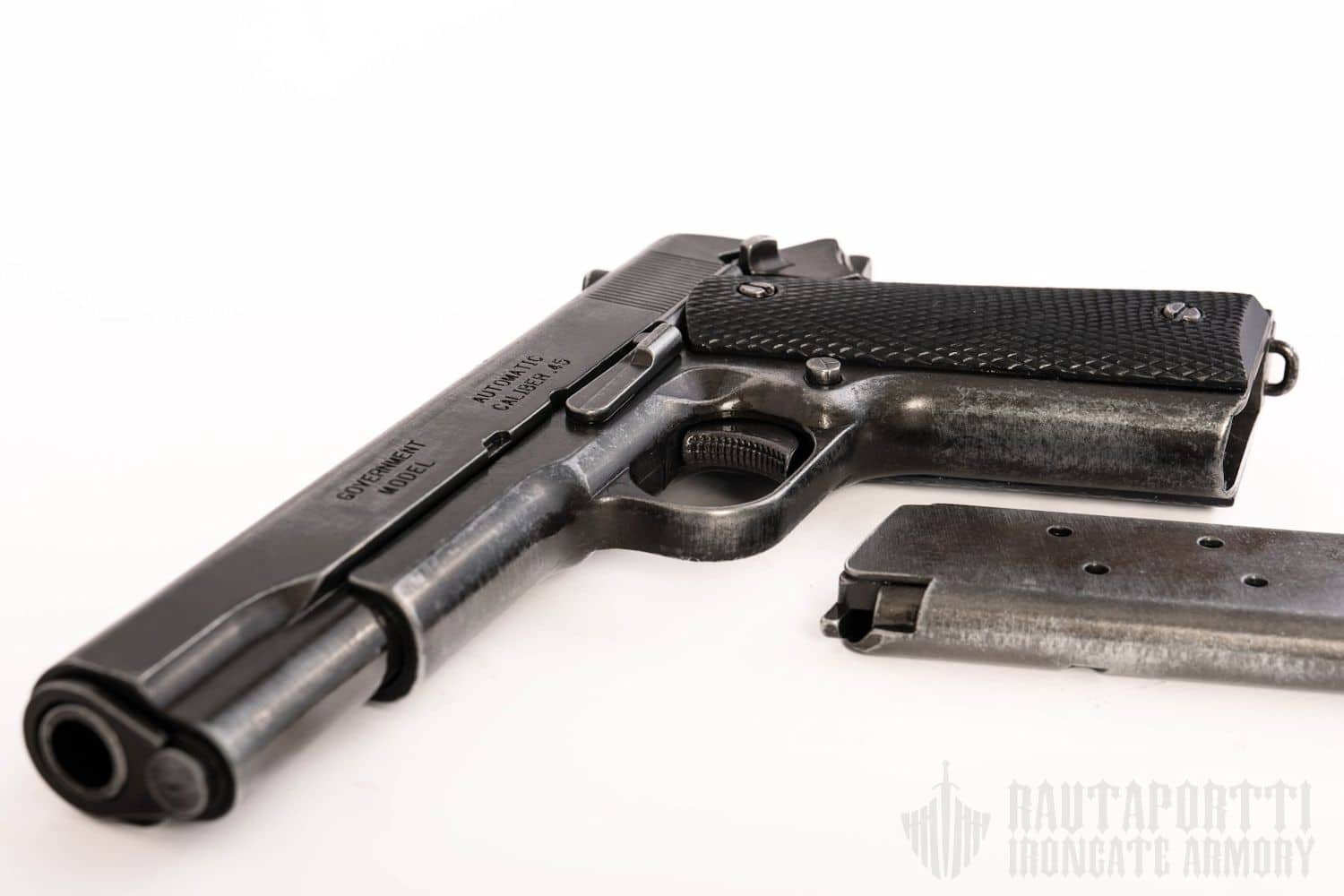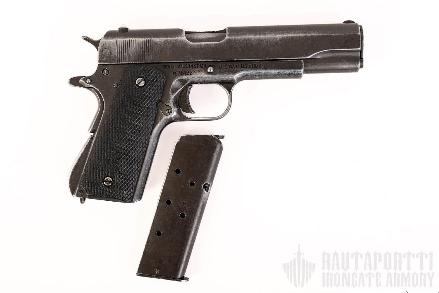 The Colt M1911 is a single-action self-loading pistol designed by John Browning. It was selected as the U.S. Armed Forces service pistol .45 ACP (Automatic Colt Pistol) caliber in 1911 under the designation Automatic Pistol, Caliber .45, M1911. In 1924, an improved version of the weapon, the M1911A1, was manufactured and remained in service in the United States until 1985. This is a replica of the 1924 improved M1911A1 model, but the differences from the previous model are very small, so the pistol also passes as the previous 1911 model in video projects, etc. where the details of the weapon are not examined in close-ups.
