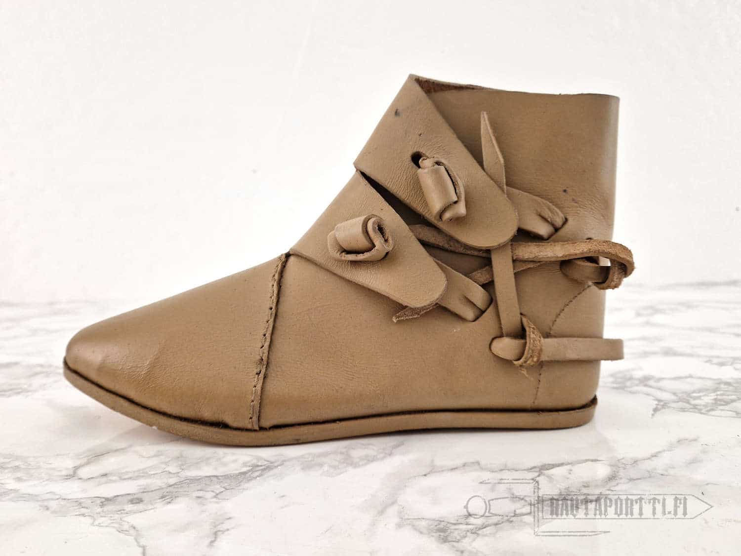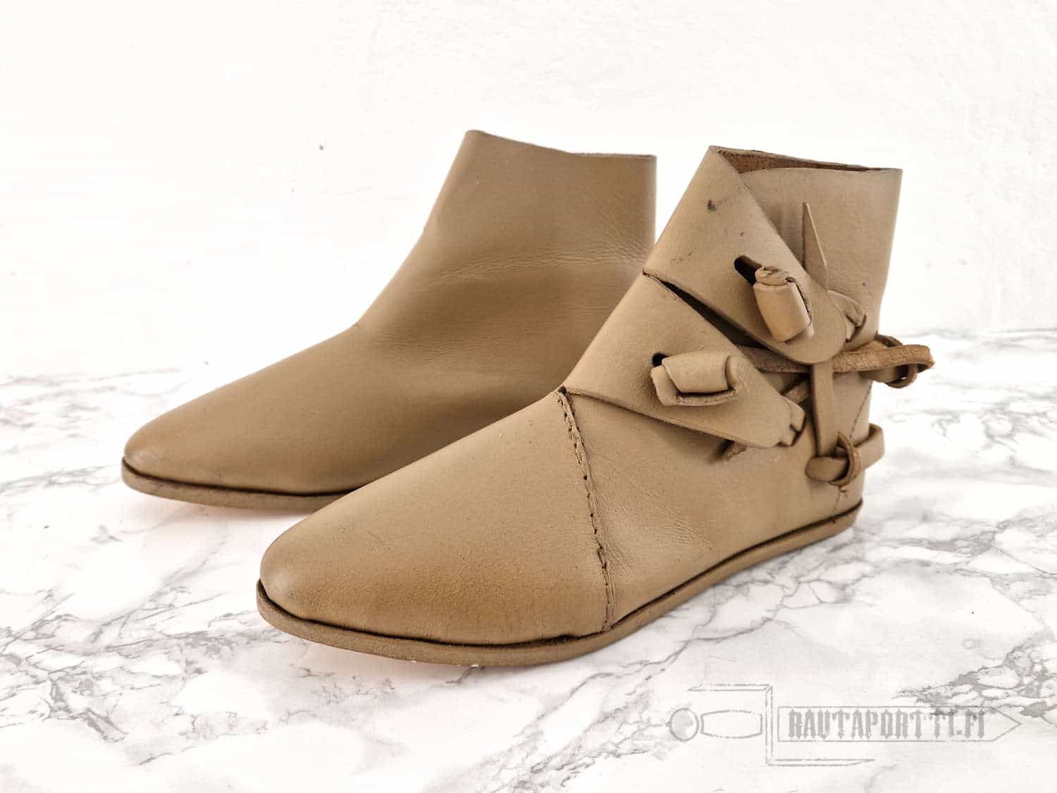 - Ankle-height Viking Era shoes with 2 closure buttons