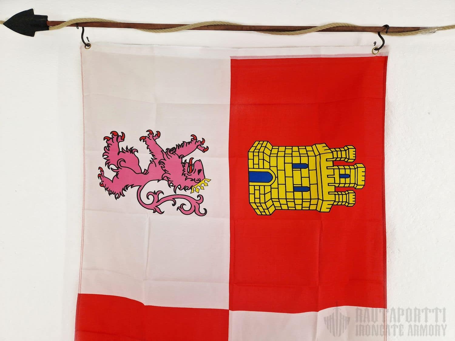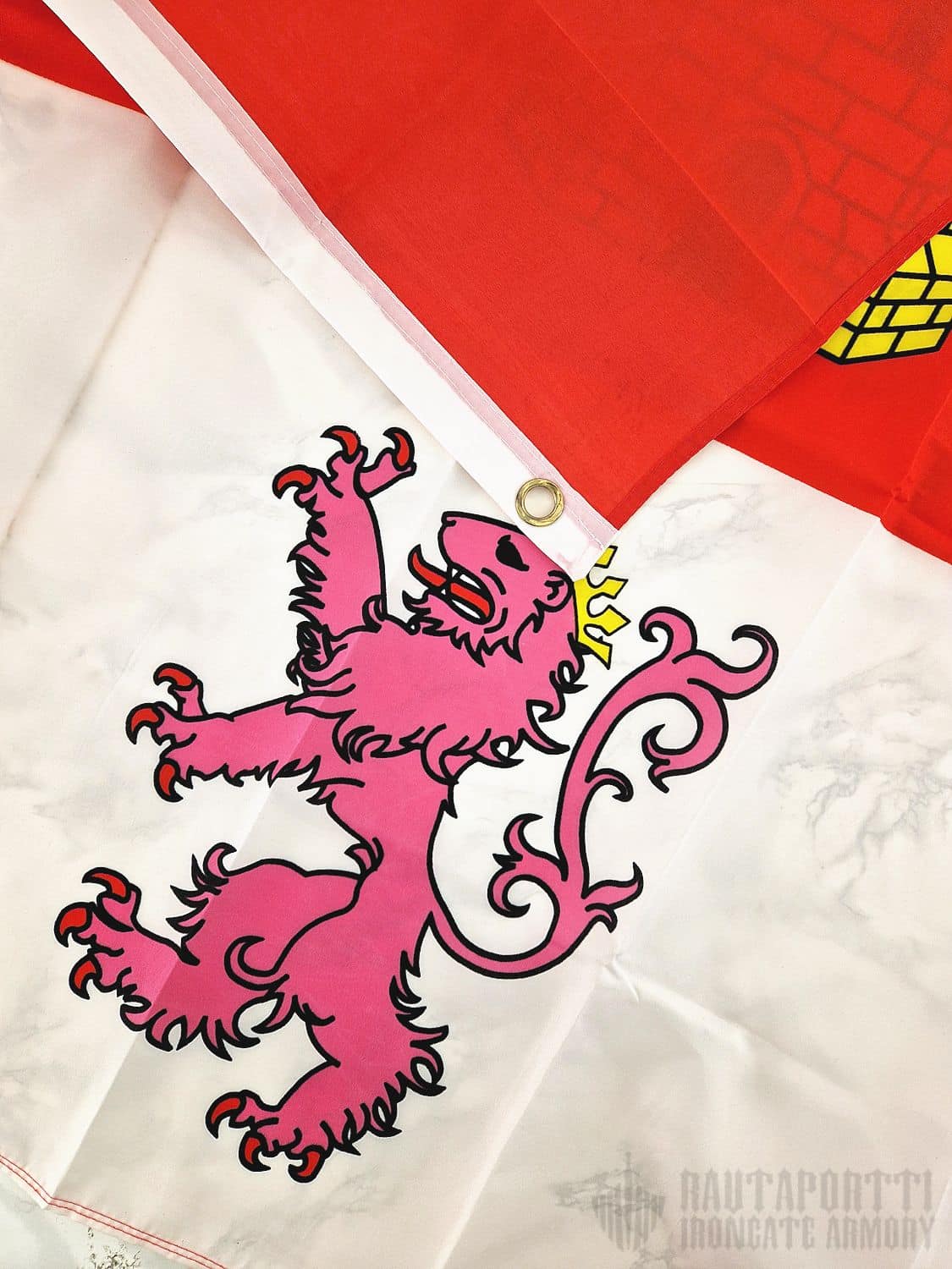 The flag of Castile and LeΓ³n consists of the quartered coats of arms of Castile, a castle, and of LeΓ³n, a lion. Saint Ferdinand III was the King of Castile from 1217 and King of LeΓ³n from 1230, and he unified the two kingdoms under his crown of Castile, and quartered the arms as a symbol of the union.