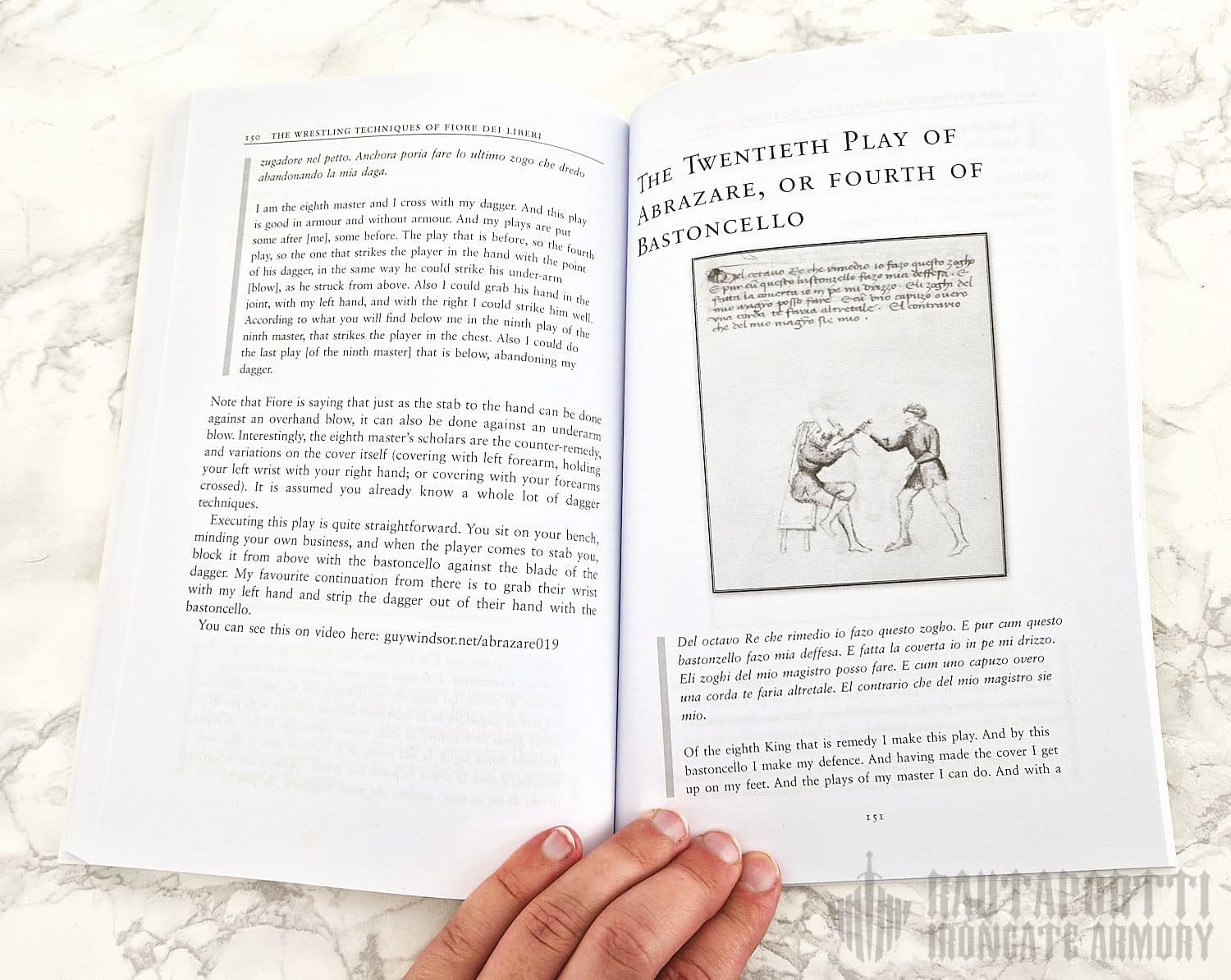 In this book, Windsor takes you through all of Fiore's wrestling techniques. Each technique (or “play”) is shown with the drawing from the treatise, Windsor's transcription and translation of the text, his commentary on how it fits into the system and works in practice, and a link to a video of the technique in action. The book also contains a detailed introduction describing Fiore's life and times, and extensive discussion of the contexts in which Fiore's art belongs.