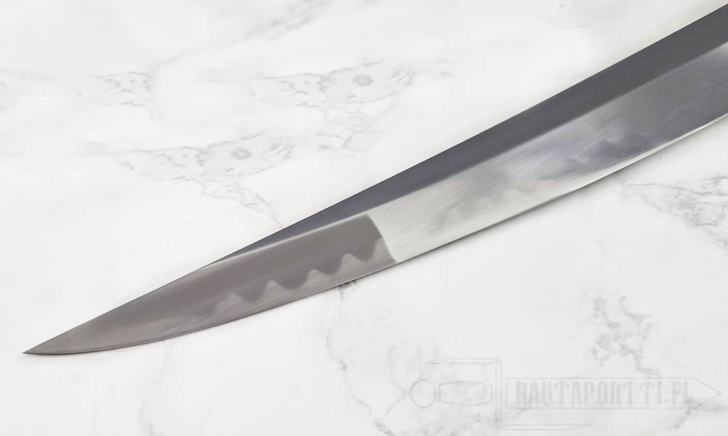 Fully hand forged nagasa is hazuya-polished and sharpened from the strong and proven T10 steel. Appealing shinogi line with extra long kissaki are completed with frantic real clay tempered hamon. Resulting one of the finest samurai sword we have forged.
