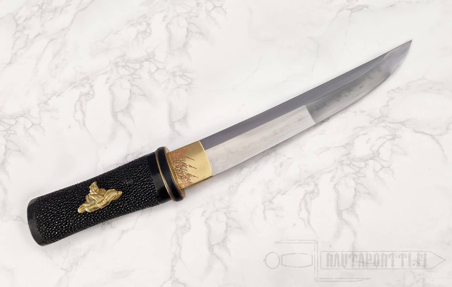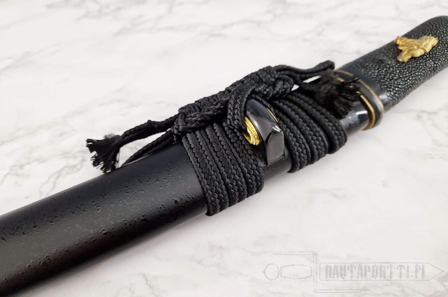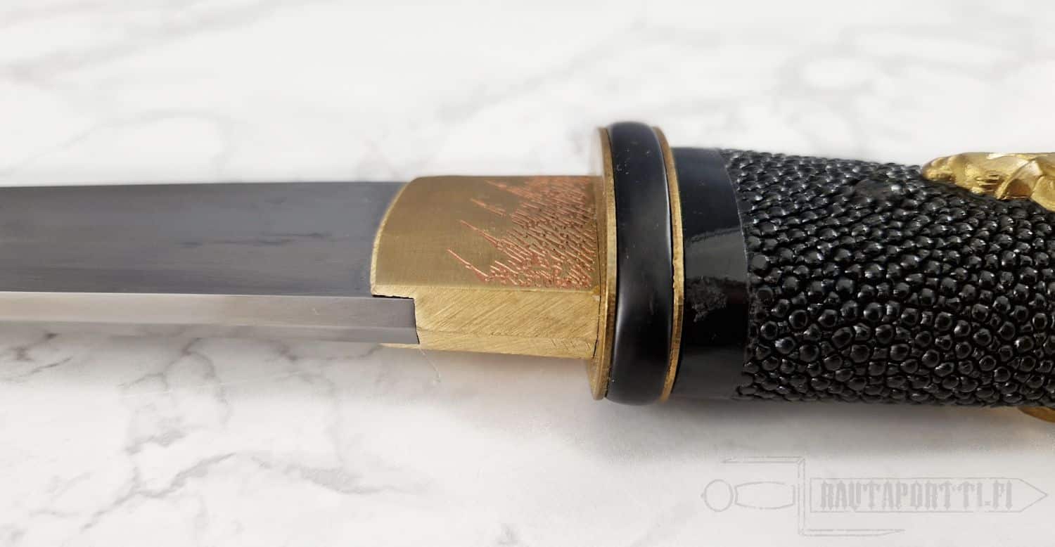 - Handle wrapped in black rayskin, Rikko shape for a firm grip