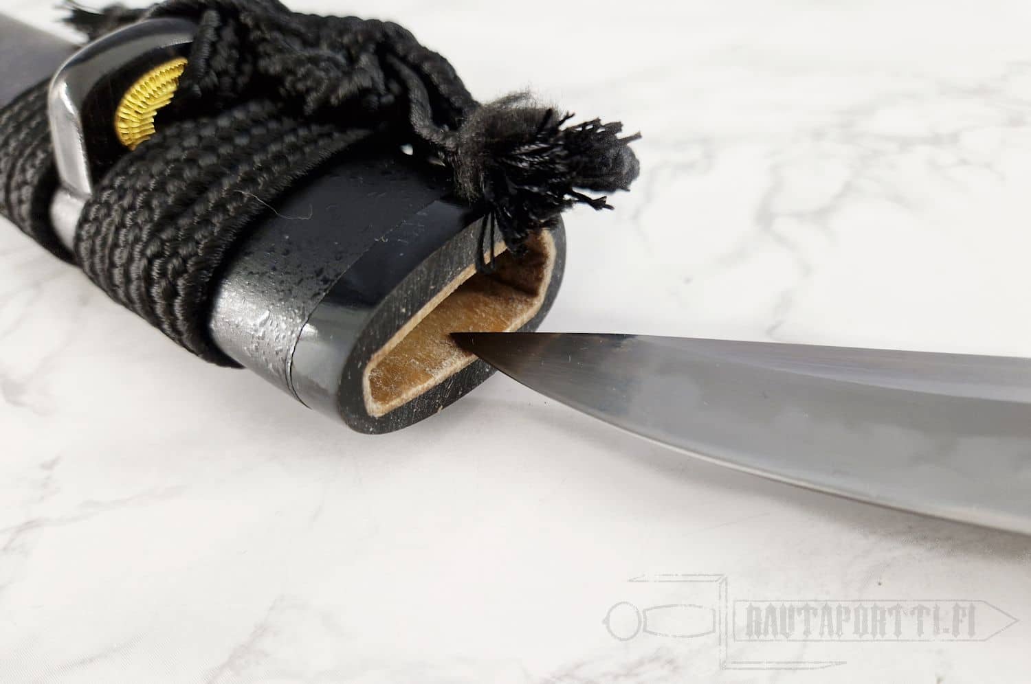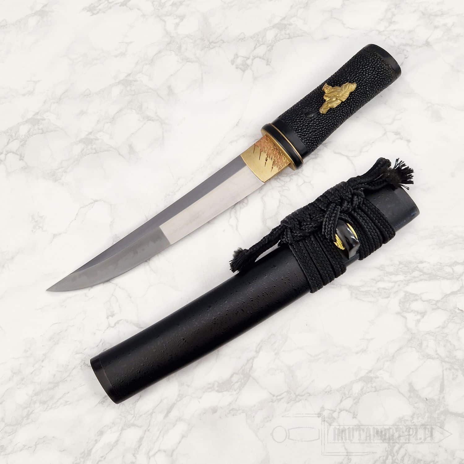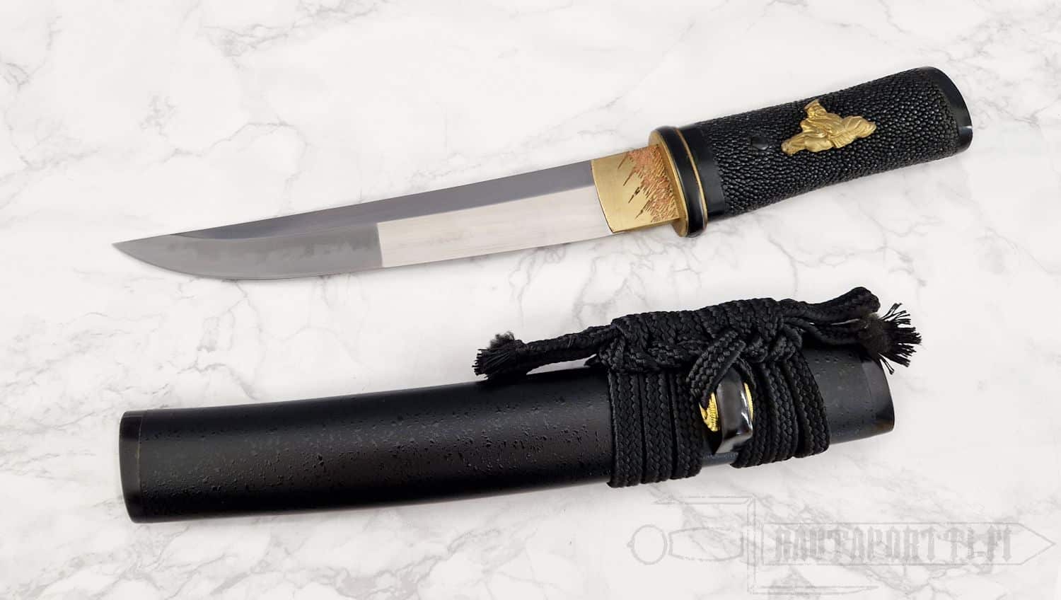 - Handle wrapped in black rayskin, Rikko shape for a firm grip