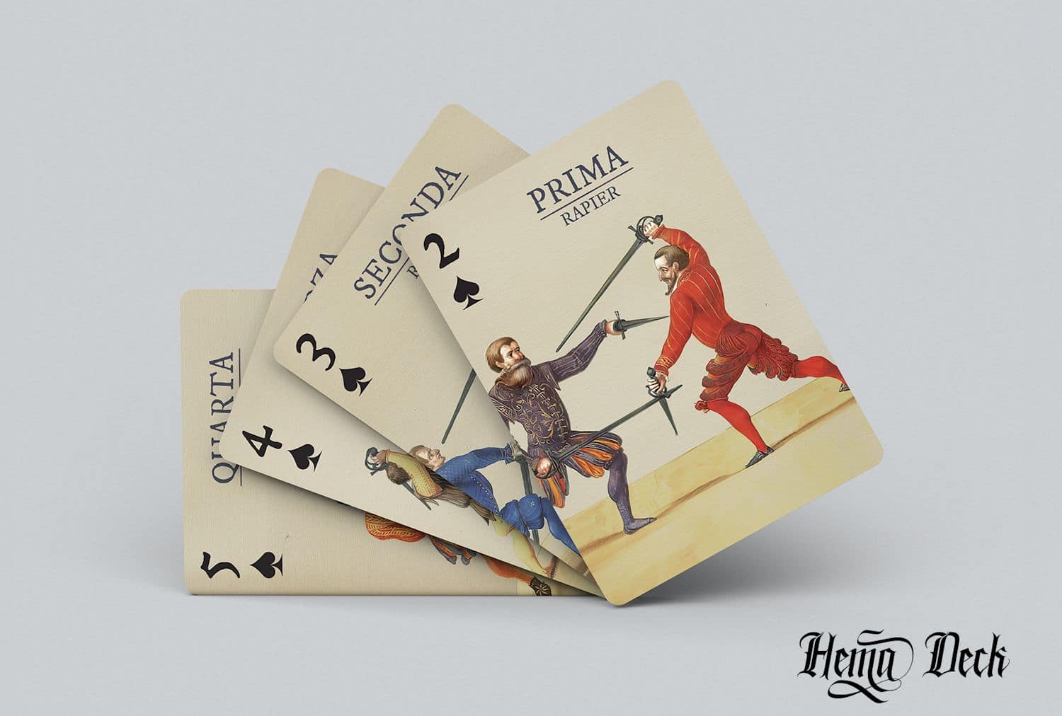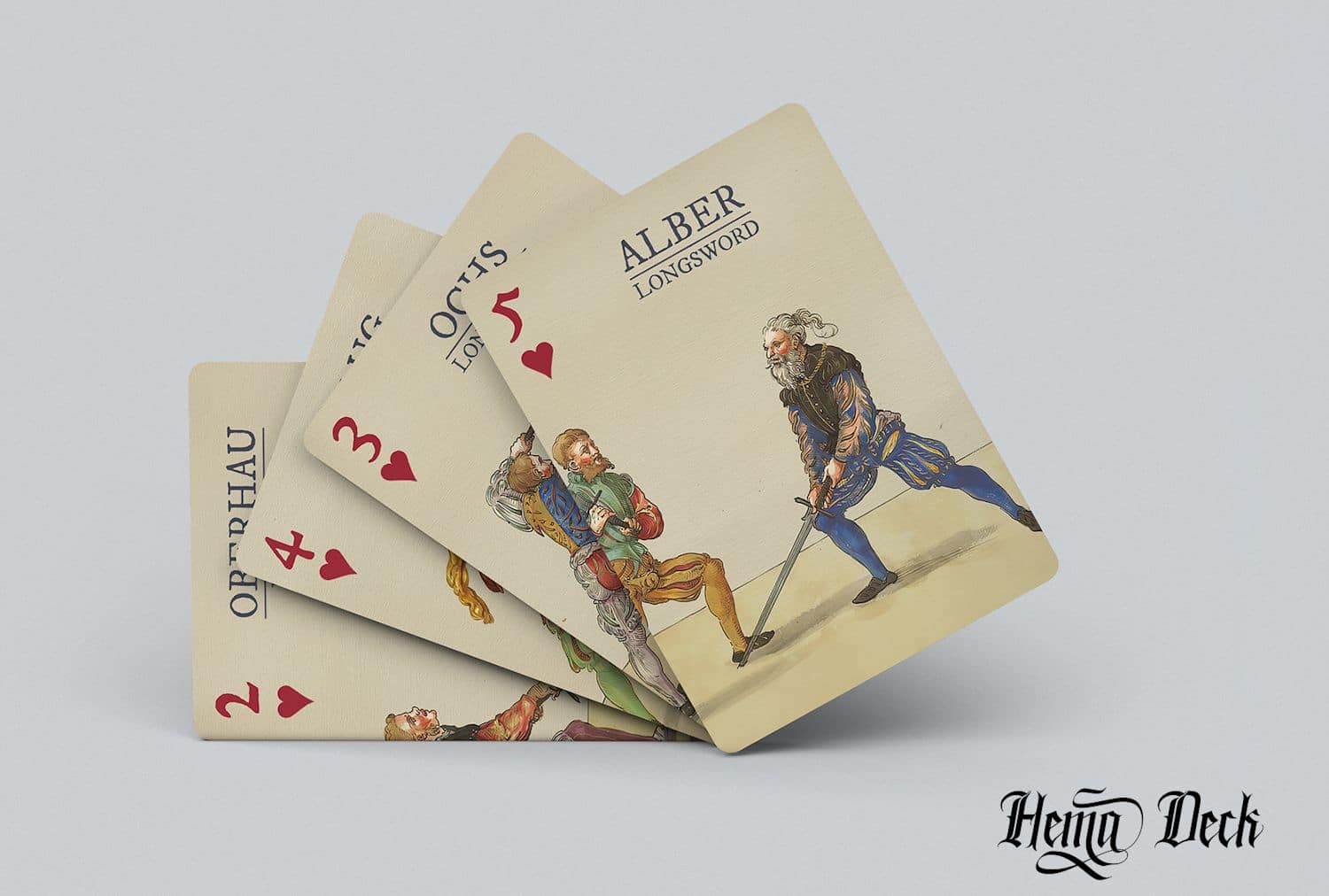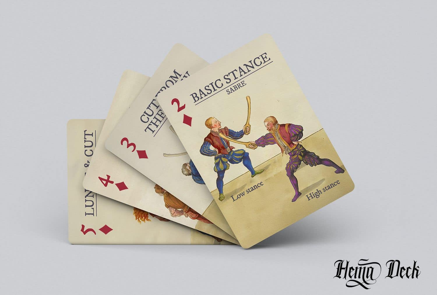Beyond its educational purpose, the HEMA Deck is also a stylish promotional item for the HEMA community. It makes a perfect prize or gift at tournaments, workshops, or training camps and serves as a great conversation starter when introducing newcomers to the art of historical fencing. The illustrations are inspired by the fencing treatises of Paulus Hector Mair, incorporating both original historical elements and newly created artwork. This blend pays homage to tradition while reflecting the diversity and spirit of today’s HEMA community.