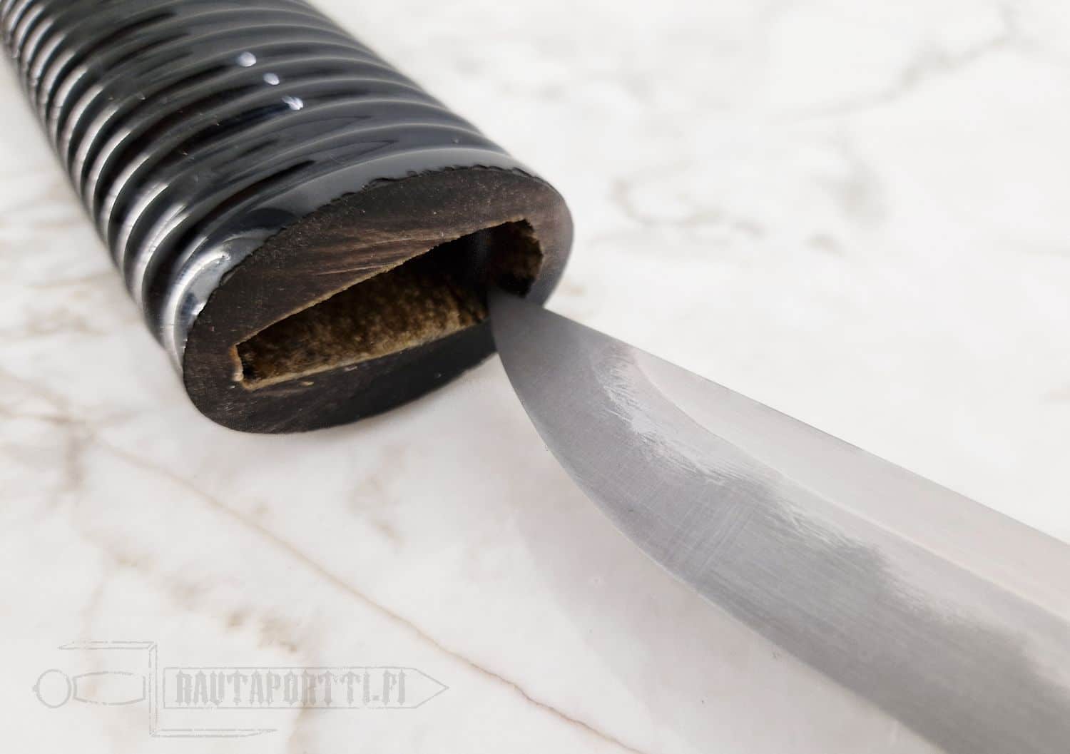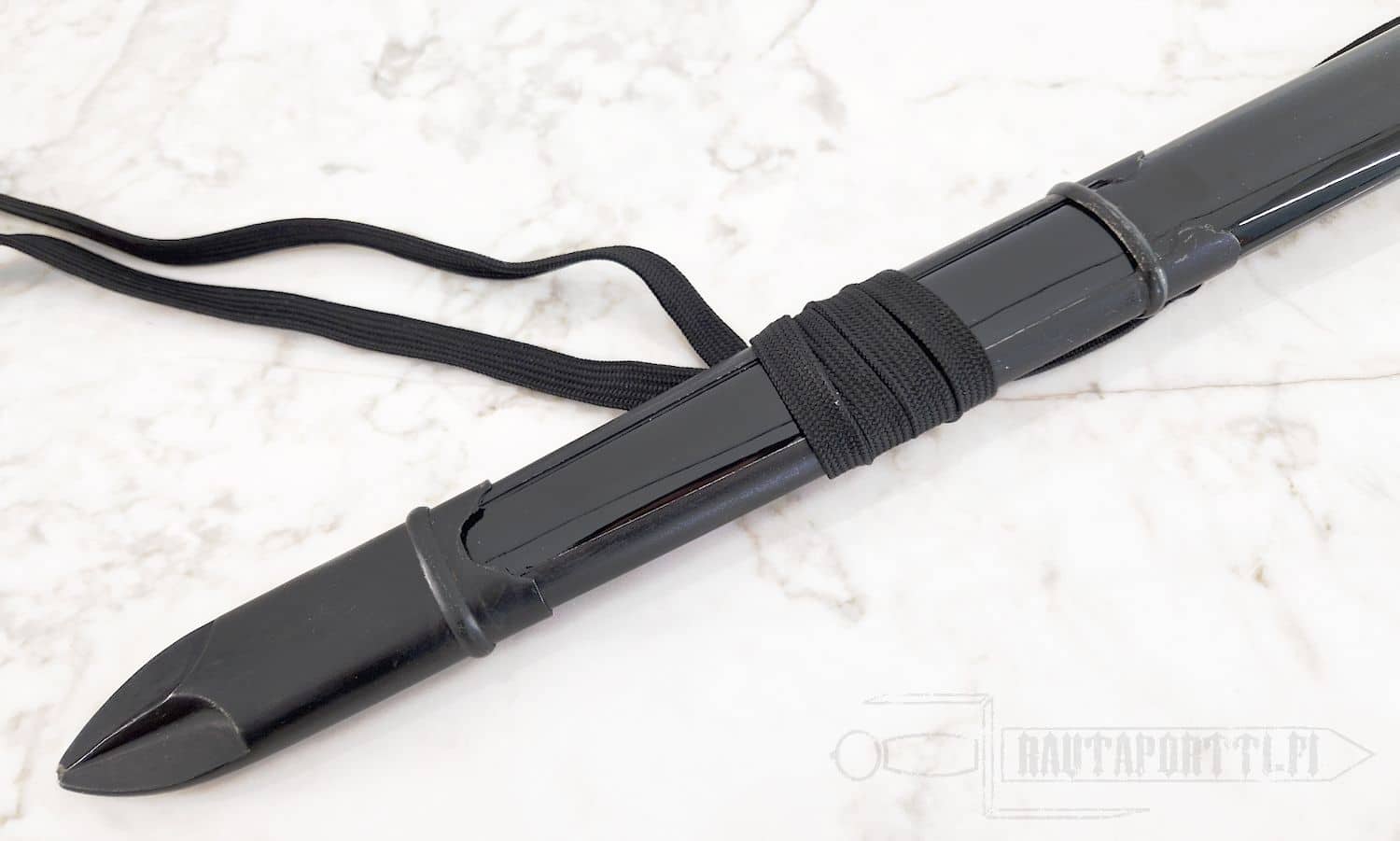 - Includes wooden saya with rattan wrap and spike at the end