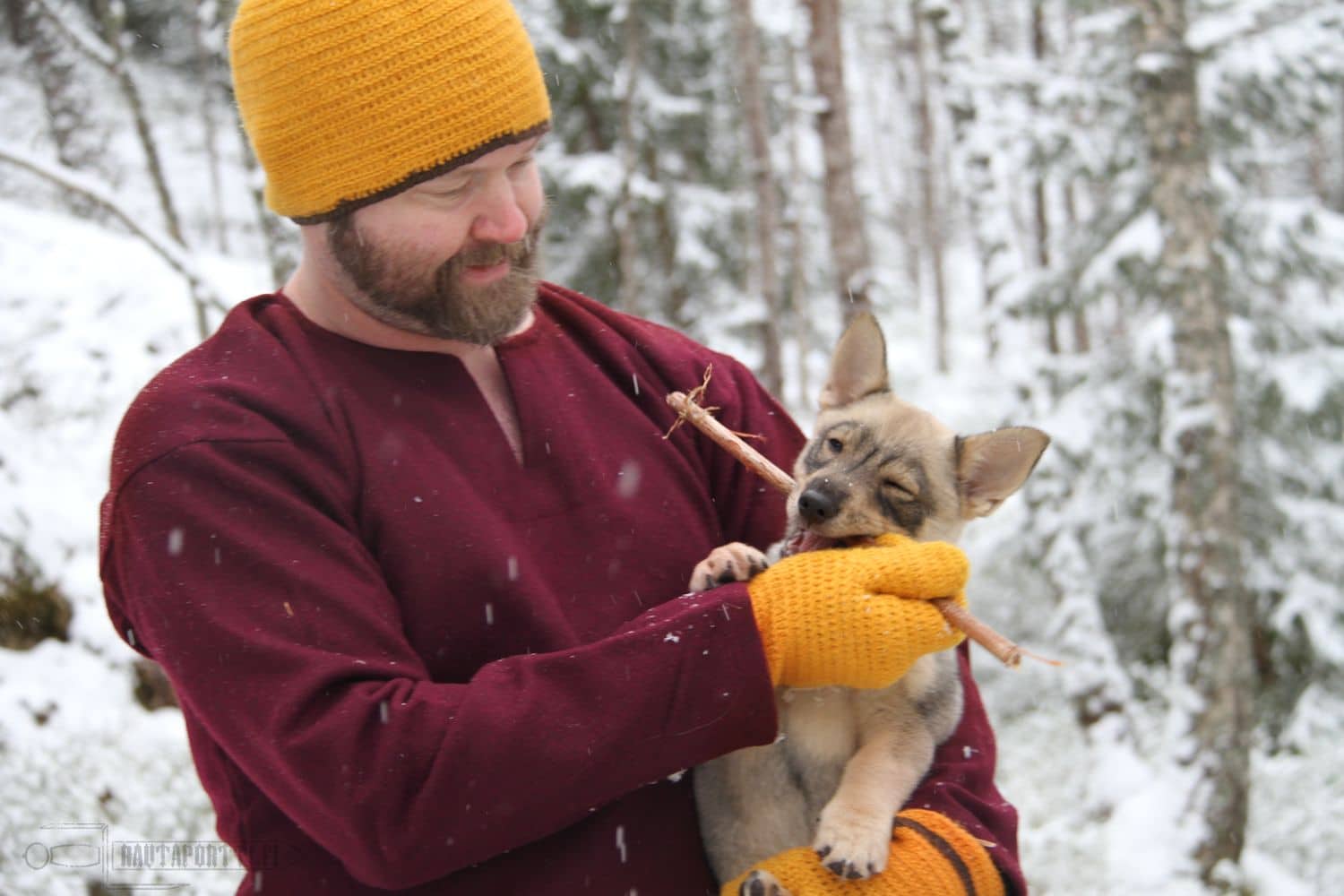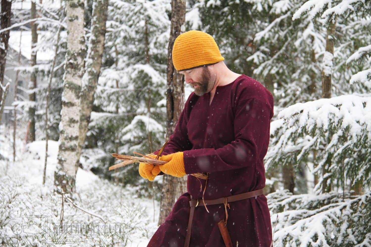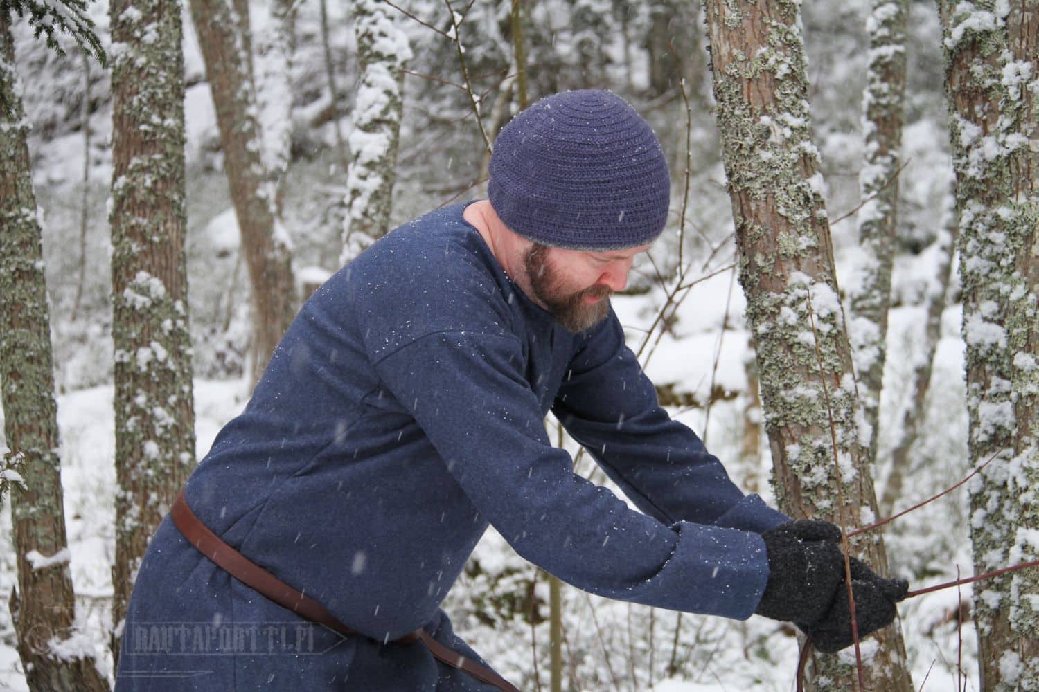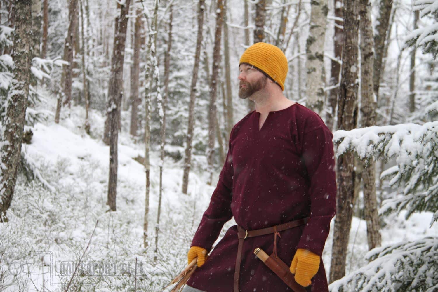 In northern Europe the changes were slow, and although the tunic model is from the iron age, it would not have looked out of place on an early modern farm either. The tunic has been left simple and unadorned so it can be used by anyone irrespective of their social status, be they a wealthy merchant or a warrior, and naturally it will work well for everyday tasks at the home farm. The wool tunic will keep the adventurer warm when crossing the North Sea or the Baltic. The natural quality of felted sheep wool means that the tunic is naturally somewhat waterproof, so it will not get soaked if you encounter light drizzle on your journeys, making it ideal for adventures in the autumn and winter time.