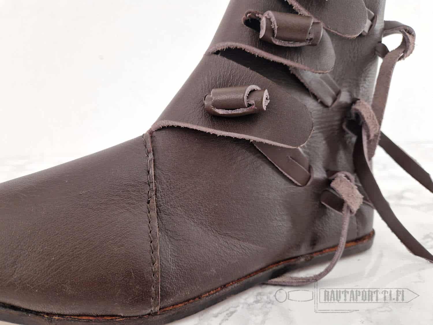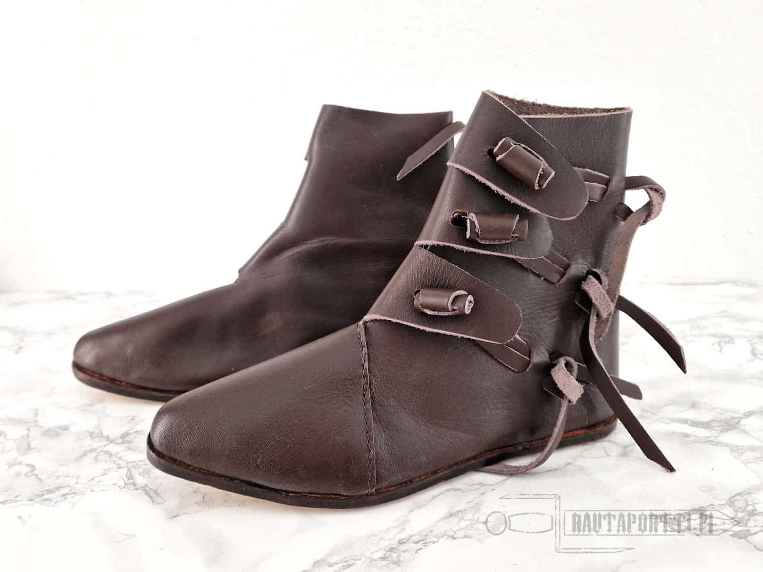 - Mid-height shoe or half boot -sized viking shoe with 3 closure buttons