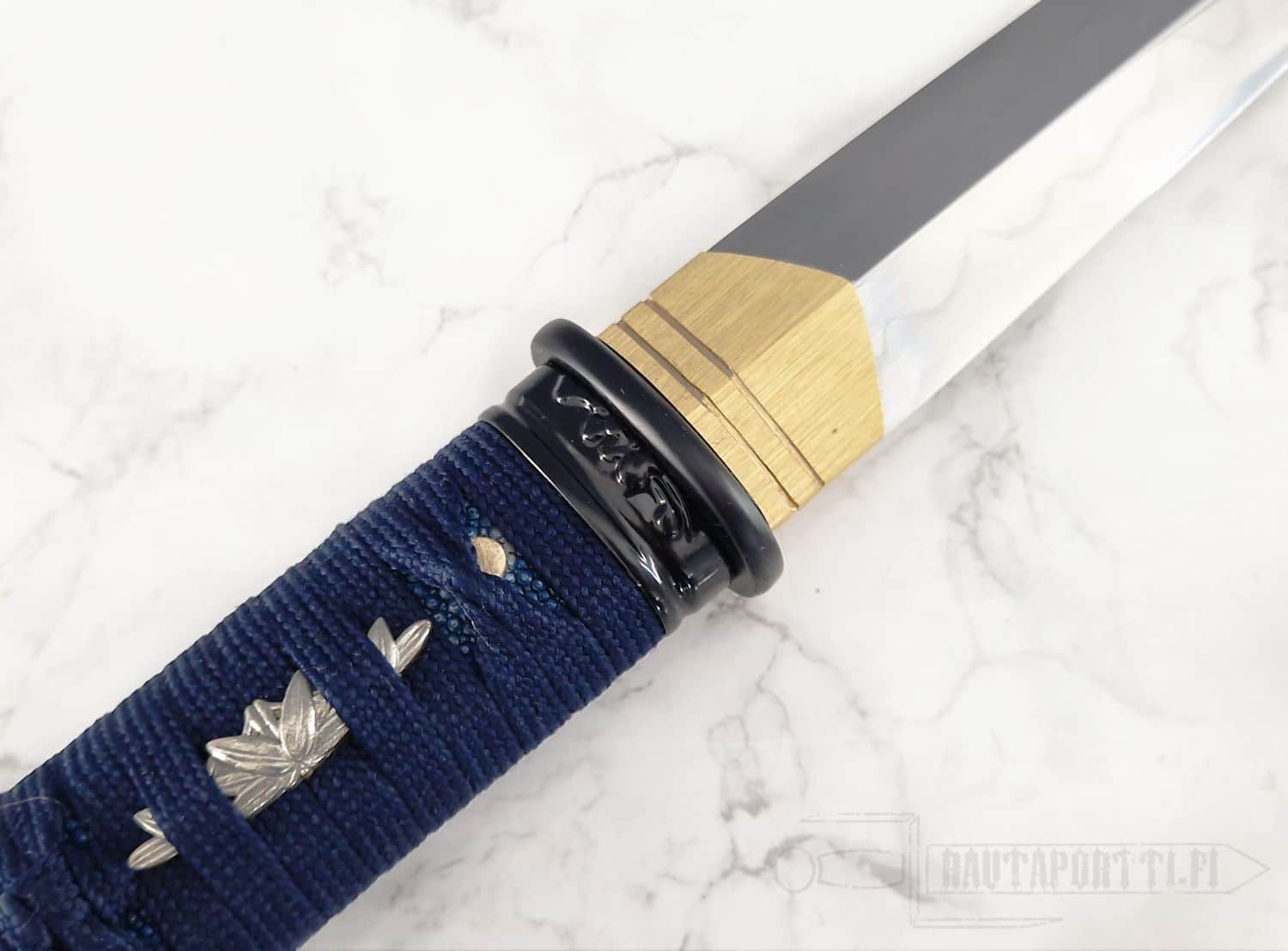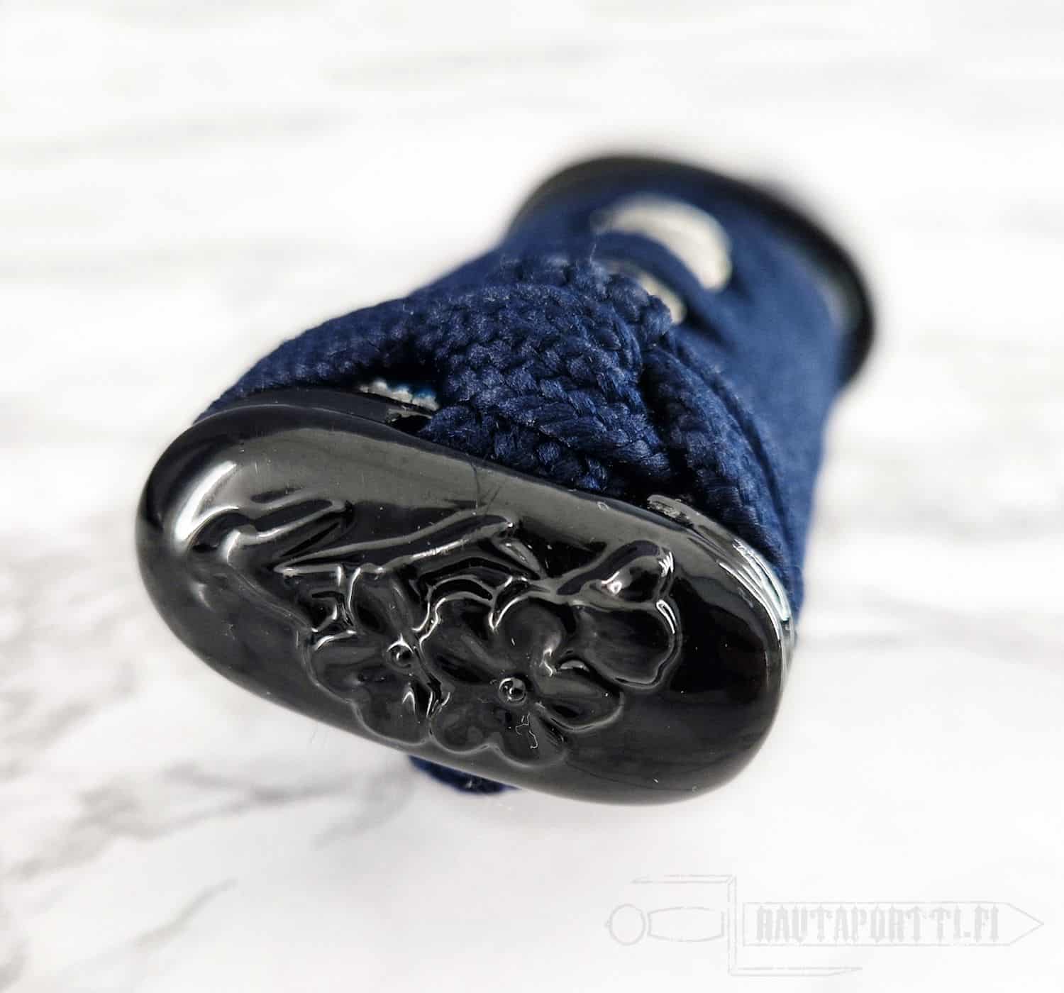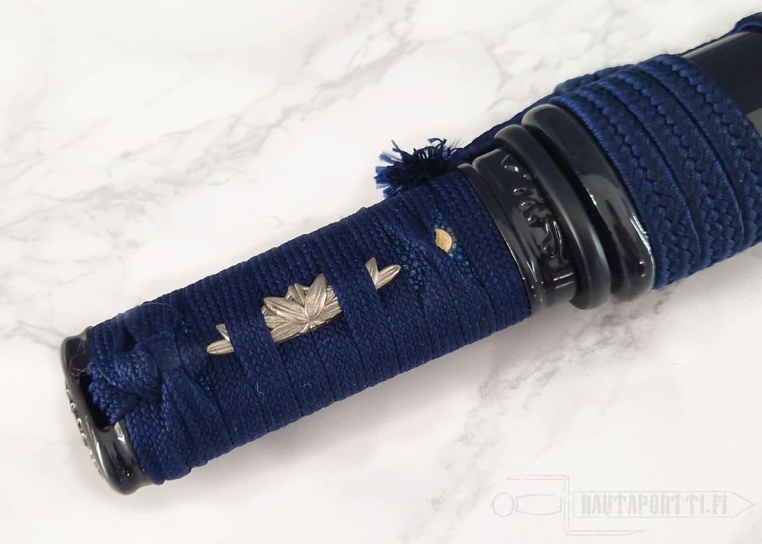 - Night blue cotton wrapping and real rayskin on the handle