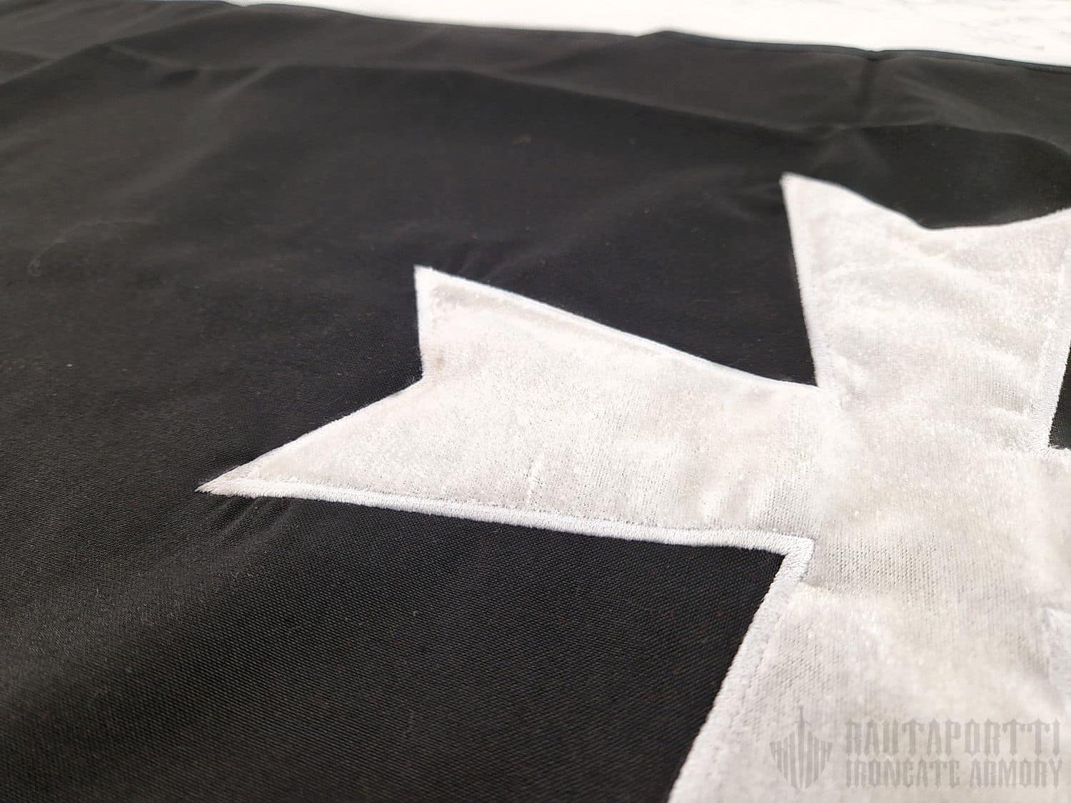 This banner is made with sturdy black cotton, and the white eight-pointed cross of Malta is embroidered to the front. The banner has four fabric loops for either hanging it on your heralds trumpet, or simply on a curtain rod or a pole for adding a touch of medieval charm to your home decor.