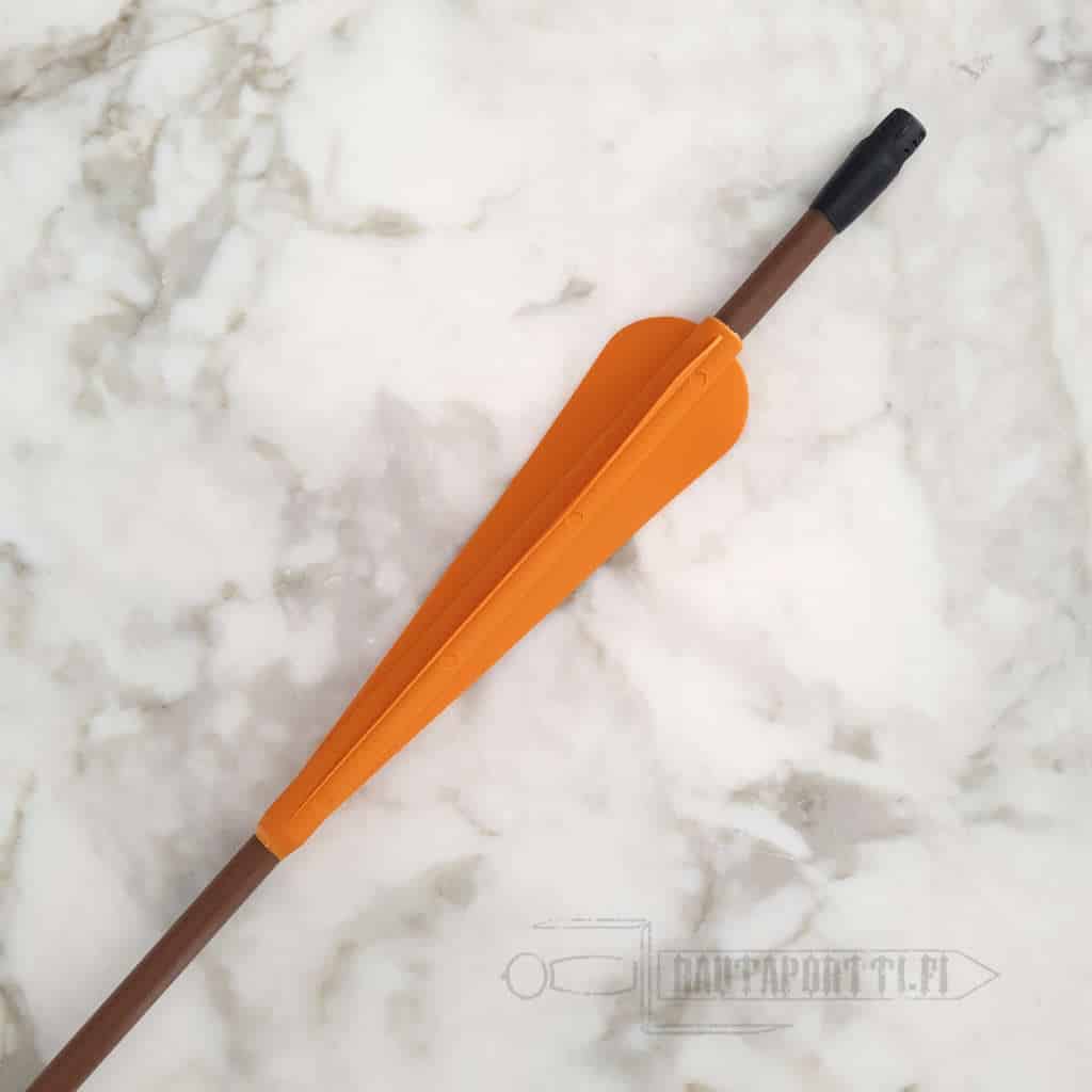 The captive fletches are generously sized and virtually indestructible. The fletching is designed in such a way that it fully encases the shaft and thus cannot tear.