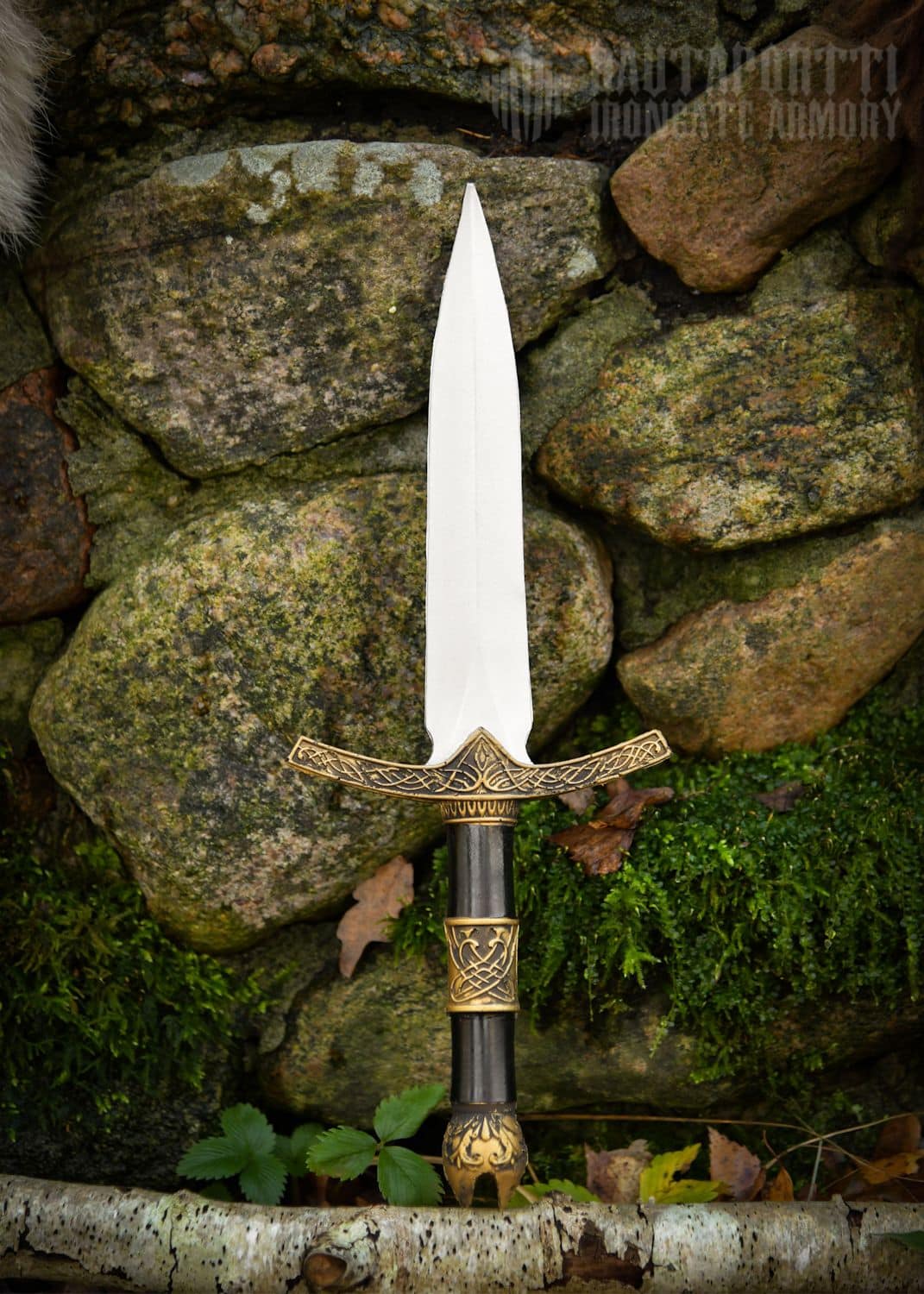 The dagger has an overall length of approx. 37 cm, and despite its sturdy appearance, it weighs only around 55g. It is the ideal choice for LARP-combat, being light enough for quick movements. It blends seamlessly into a wide range of roles and costumes, making it an excellent prop for theatre, cosplay or reenactment.