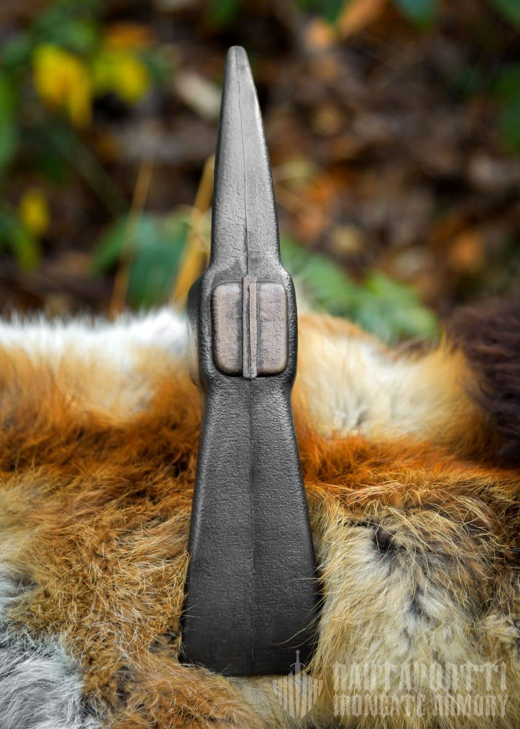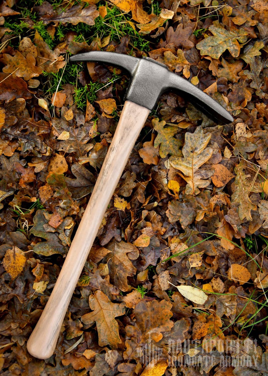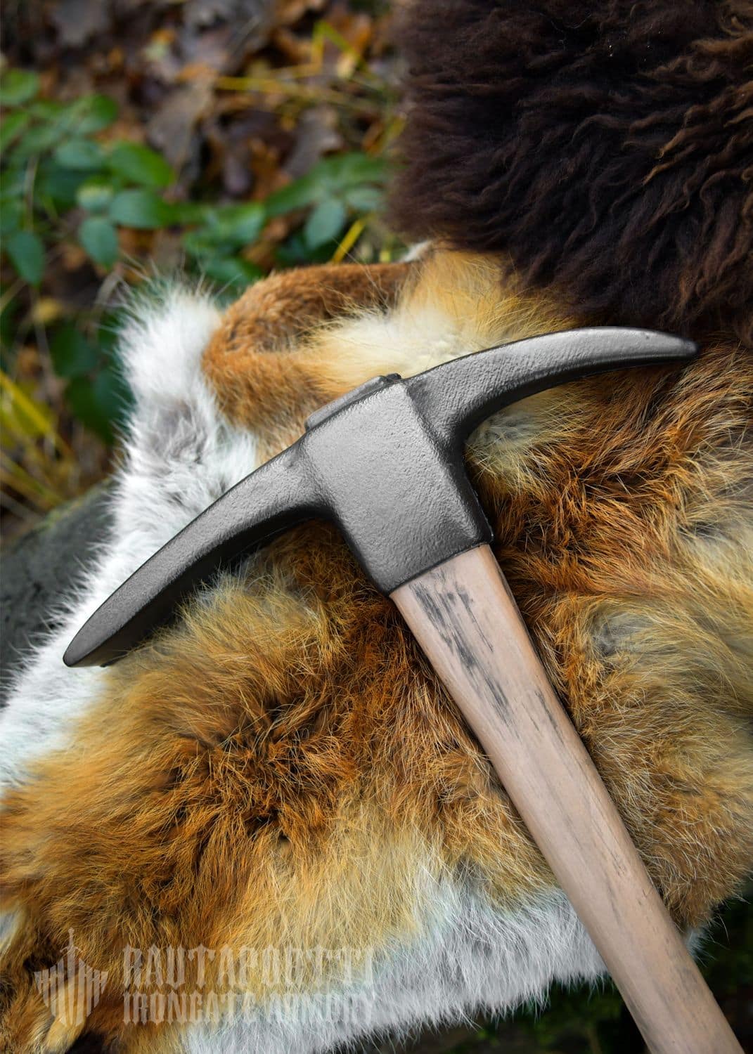 This pickaxe has an overall length of around 52 cm. Despite its sturdy appearance, it weighs only around 400 g. It is the ideal choice for LARP-combat, being light enough for quick movements. It blends seamlessly into a wide range of roles and costumes, making it an excellent prop for theatre, cosplay or reenactment.
