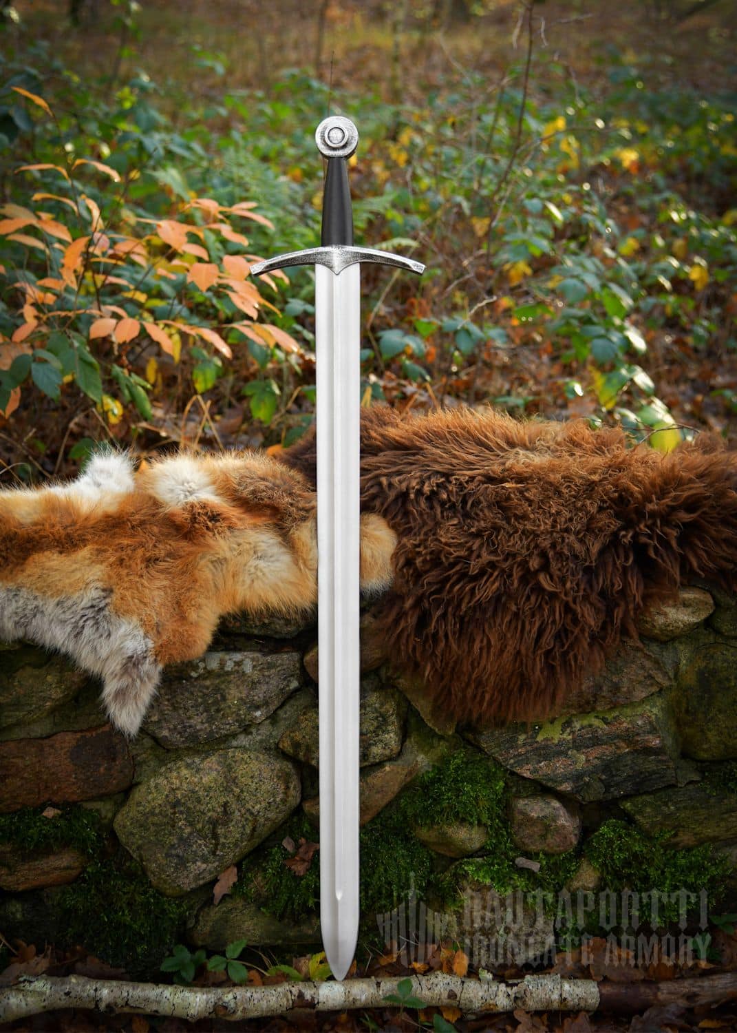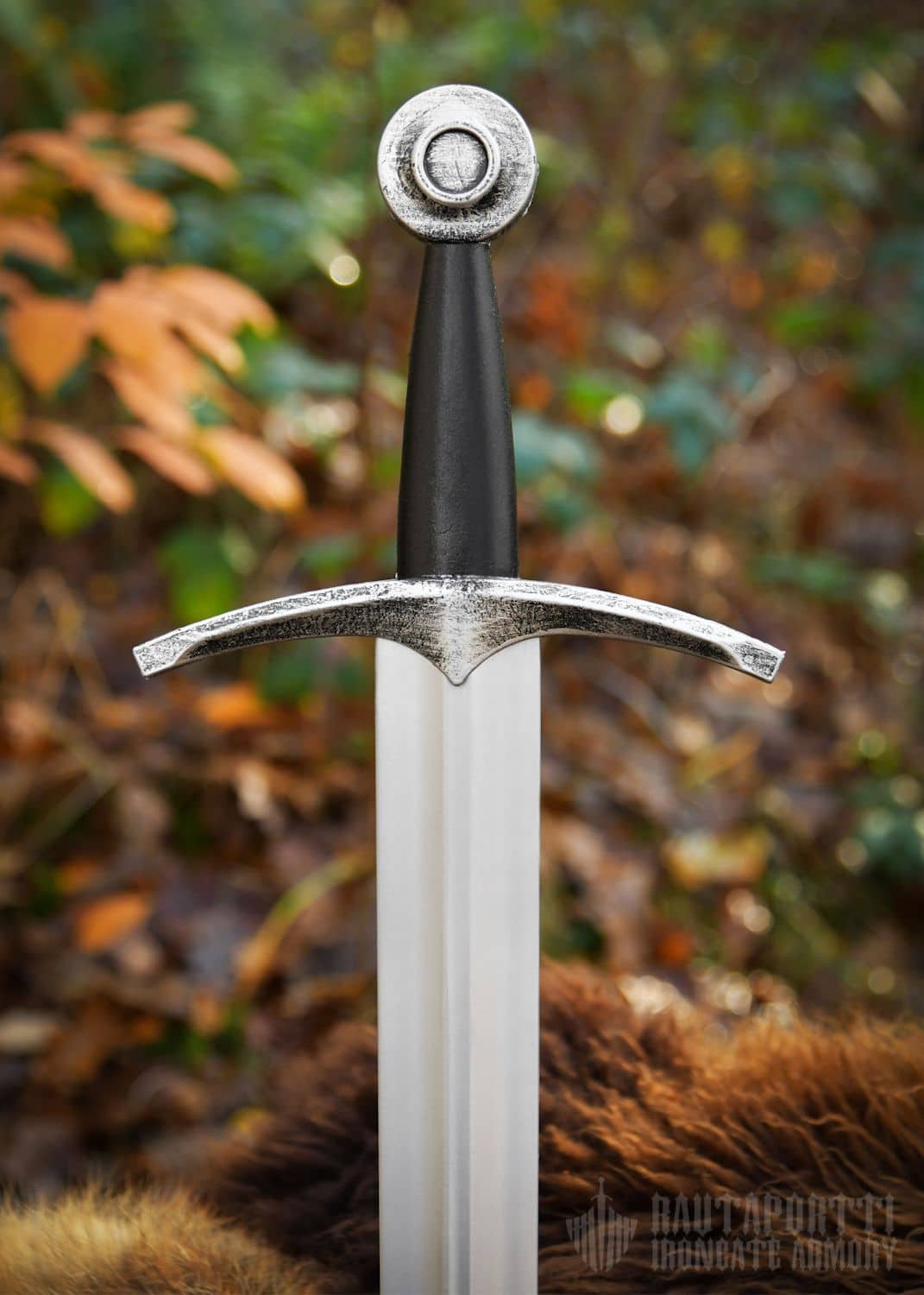This sword has an overall length of approximately 103 cm. Despite its sturdy appearance, it weighs only around 465 g. It is the ideal choice for LARP-combat, being light enough for quick movements. It blends seamlessly into a wide range of roles and costumes, making it an excellent prop for theatre, cosplay or reenactment.