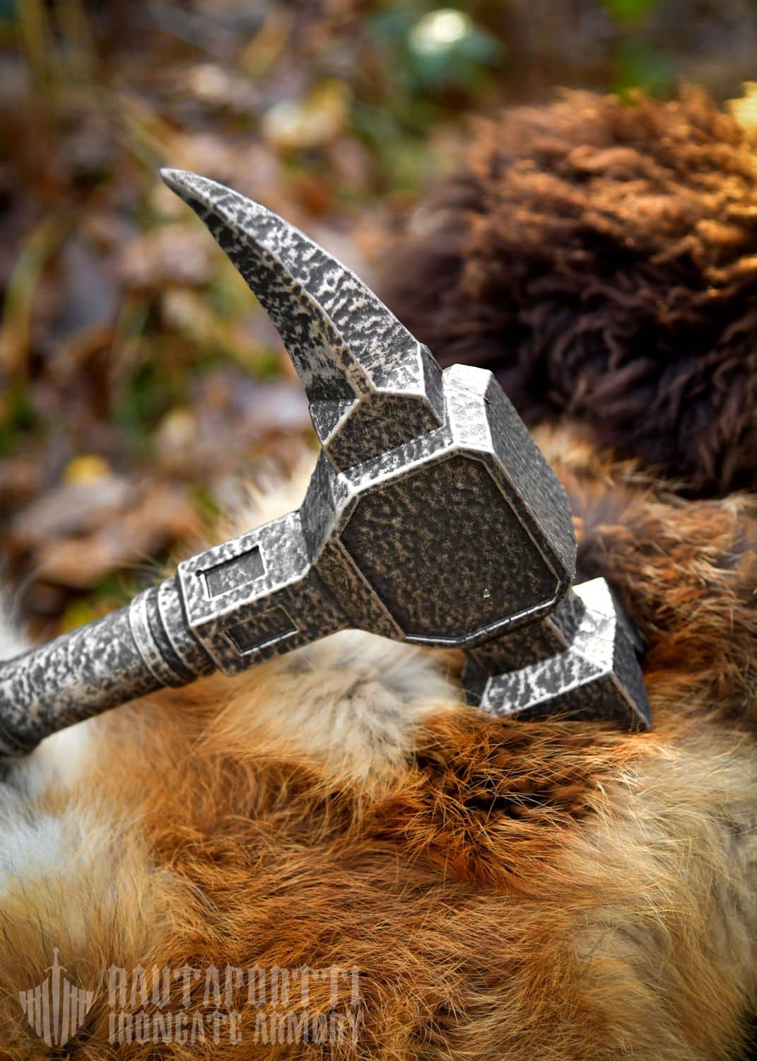The war hammer measures around 71 cm in length, making it still being manageable for the little ones. Despite its sturdy appearance, it weighs only around 460 g. It is the ideal choice for LARP-combat, being light enough for quick movements. It blends seamlessly into a wide range of roles and costumes, making it an excellent prop for theatre, cosplay, or reenactment.