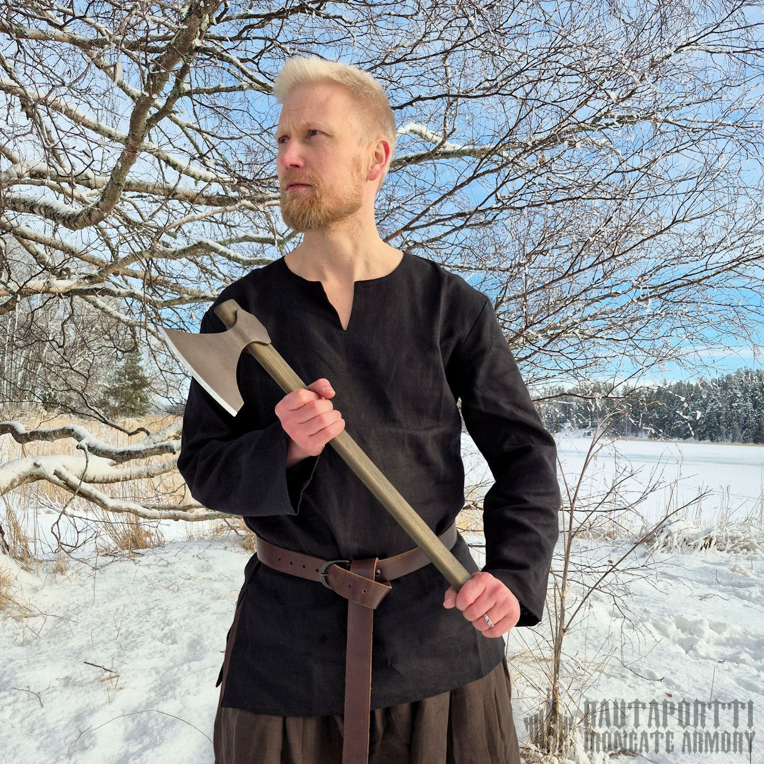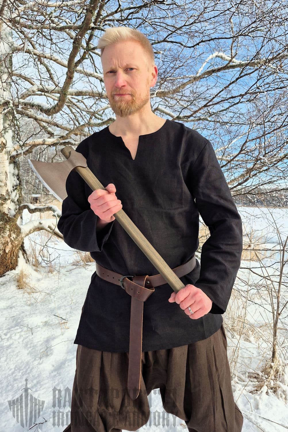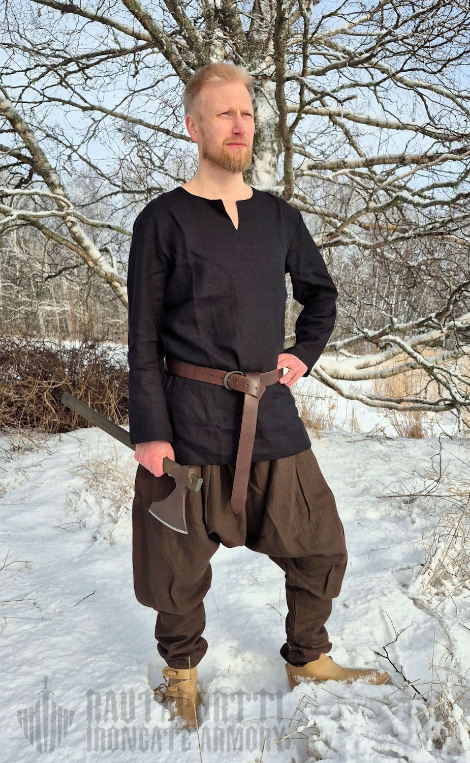 The linen in this tunic is soft to the touch but still durable and breaths very well. Linen is naturally absorbent and dries faster than cotton. Baltic linen is grown in the Baltic and Nordic countries where long cold winters around the Baltic Sea make this plant and its fibers strong and durable. Properties that our ancestors appreciated.