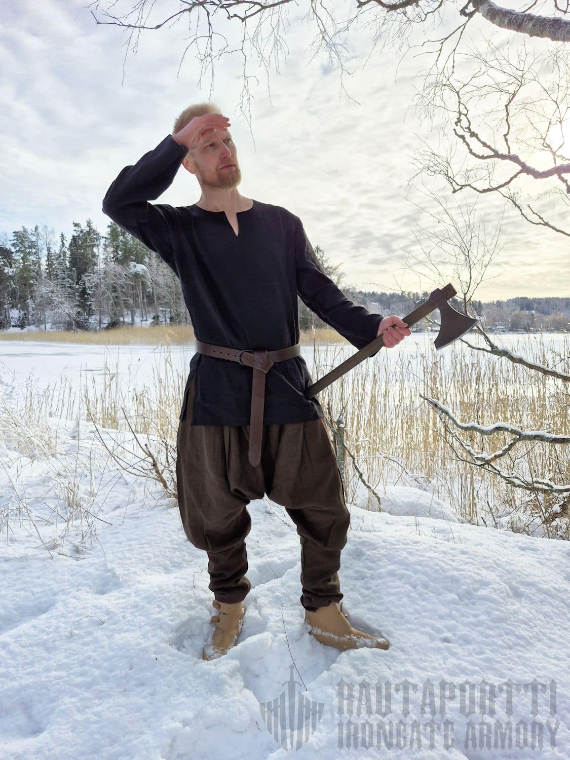 Sleeves were sometimes unnecessary long in pre-history dresses/tunics found in burials. Sometimes the sleeves were so long that separate handcuffs were needed to keep the sleeves up. Maybe the wearer was letting everyone know how wealthy they were, as they could spend scarce resources even on unnecessary clothing parts. With this shirt we have tried to keep the sleeves up to modern standards but if the sleeves are too long for you, at least then you know that you are part of the ancient royalty.