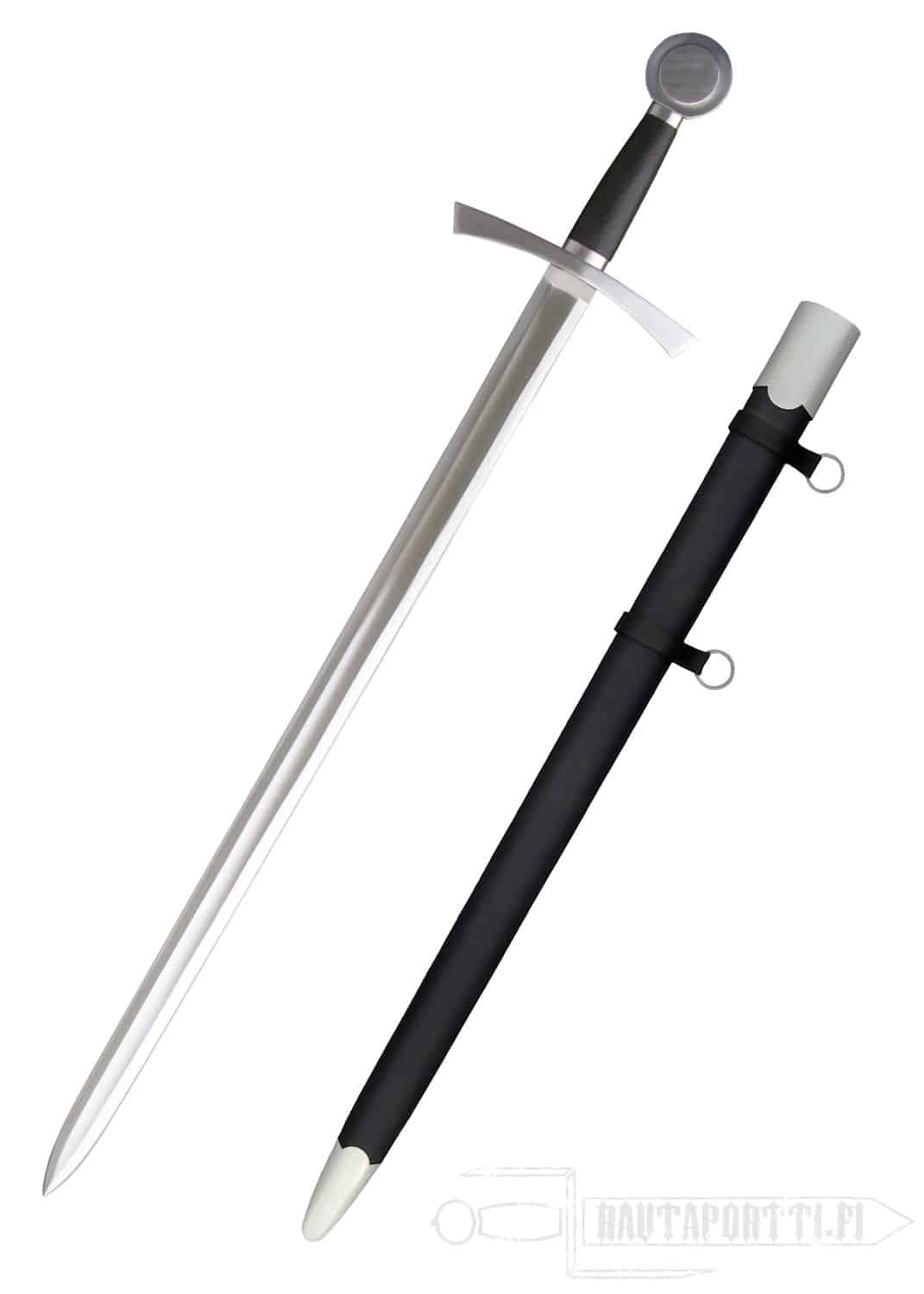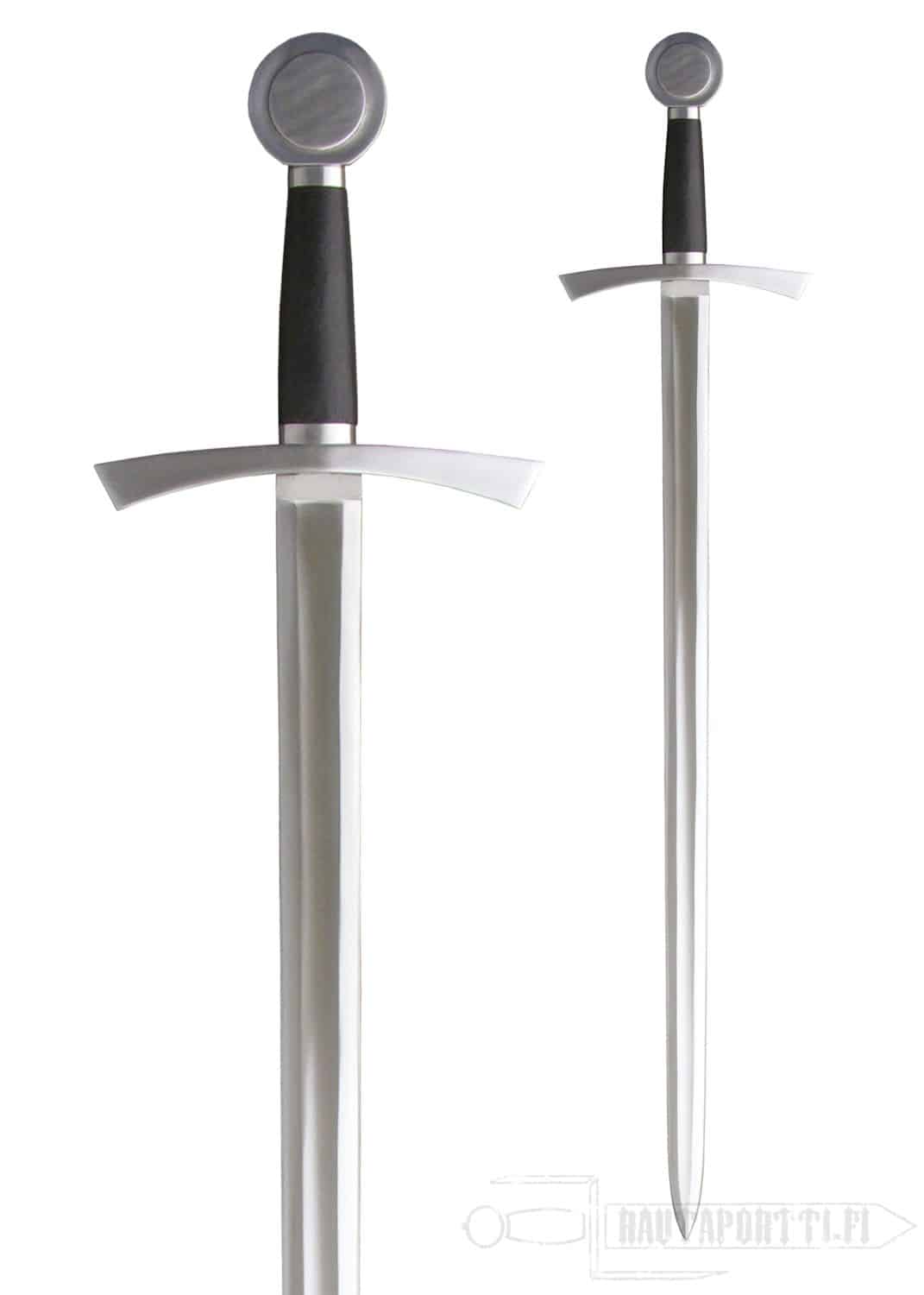 The single-hand Lionheart Sword is typical of the cruciform-hilt style of the crusading knights of Europe in the 12th and 13th centuries. The wheel pommel and slightly turned-down bow-tie guard make this a very attractive sword.