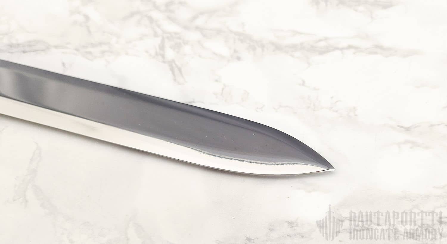 The stainless steel blade is easy to care for, and the sword is ideal as a decoration, as part of a costume, as a collectible and suitable for light cutting practice. The material is not suitable for steel-on-steel fencing or heavy cutting practice. No sheath included.