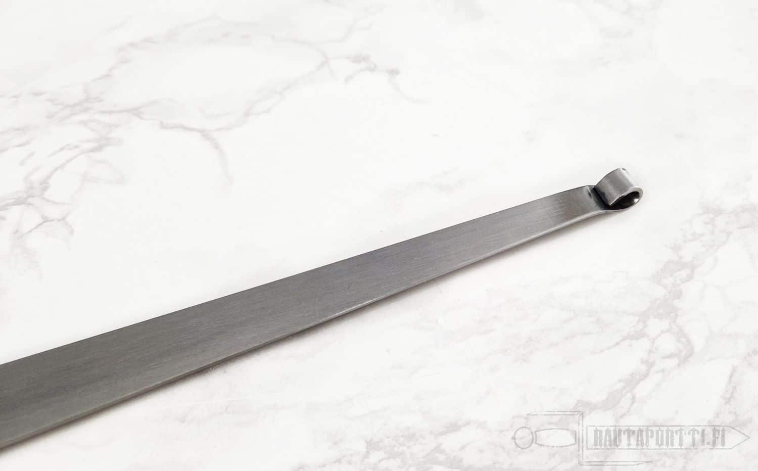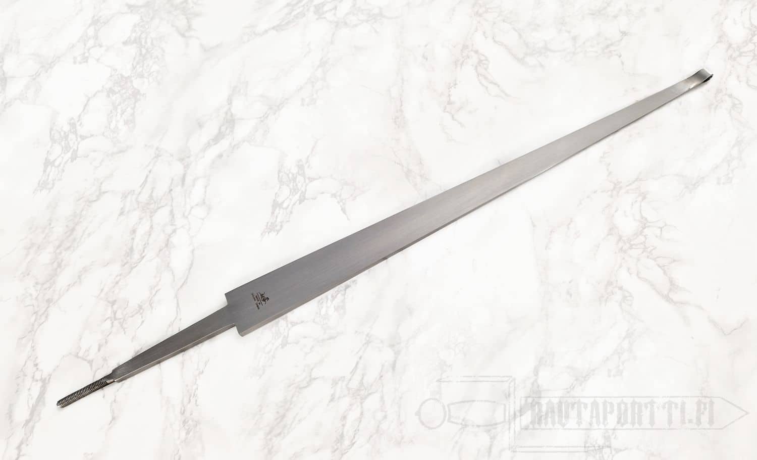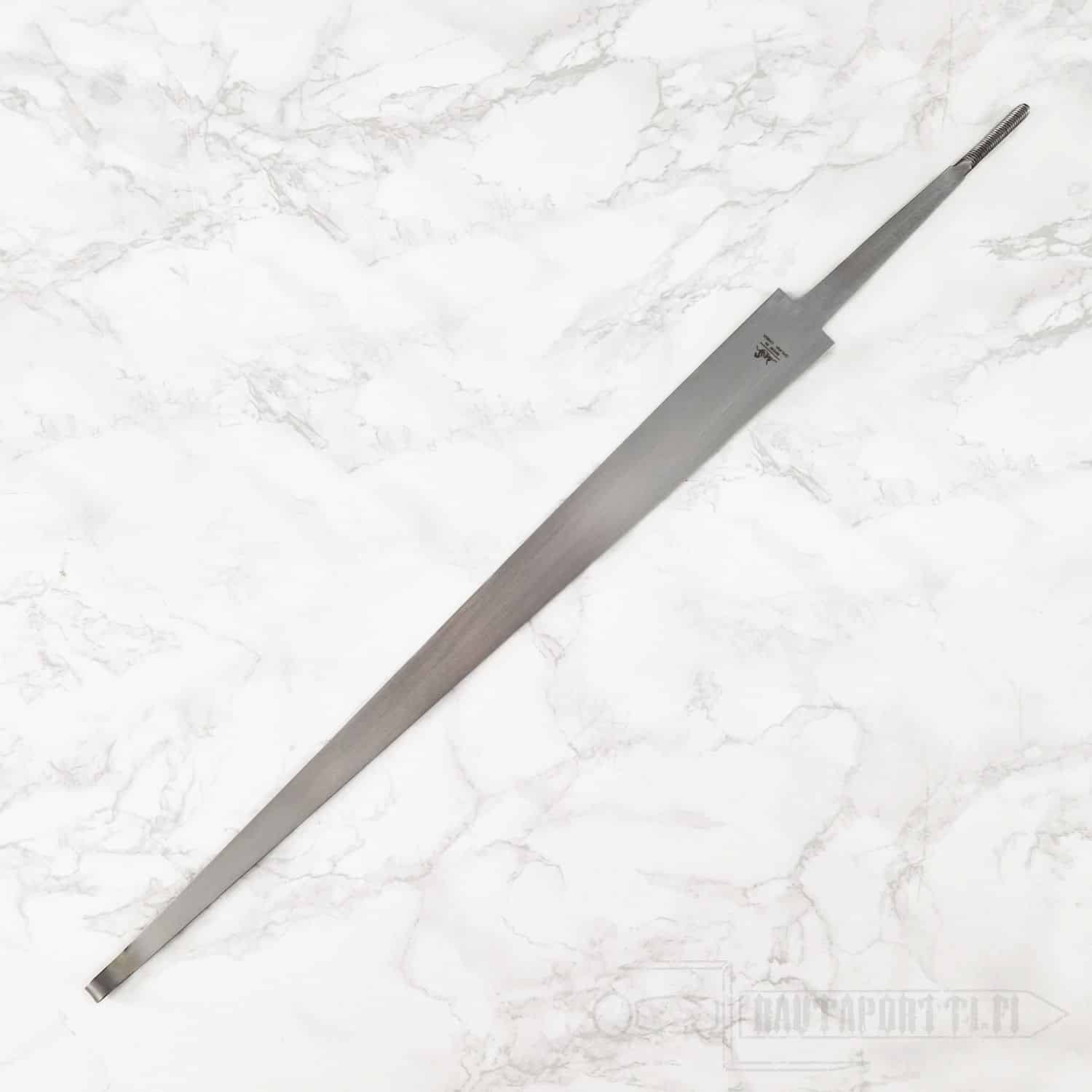 This main gauche blade has been designed as replacement part for some of Hanweis most popular main gauche daggers, the Torino, Solingen and Gustav main gauches. The blade does not come with hilt, guard or pommel parts. The practical replacement blade has blunt edges and a rolled tip, and it may be used to replace a sharp live main gauche into a training version. It can of course also be used as a basis for building your own dagger. After all fashioning your own guard, hilt and pommel may be more manageable to start with, than forging your own blade.