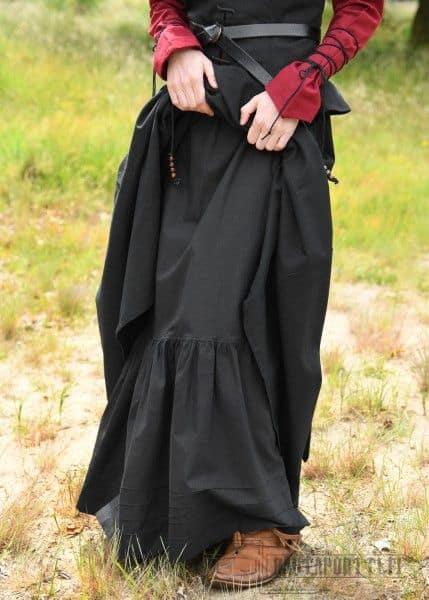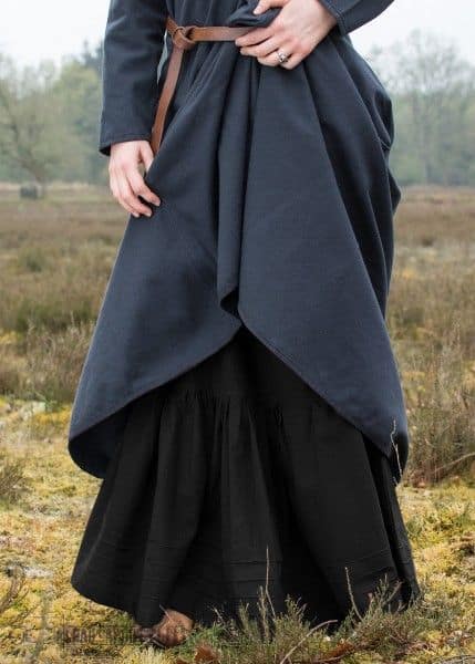 The underskirt (also known as petticoat or half-slip) was a staple piece of clothing throughout the Middle Ages. Petticoats provided additional warmth and were hence often worn in multiple layers. And as they gave more volume to outer garments, they also made for a nice silhouette.