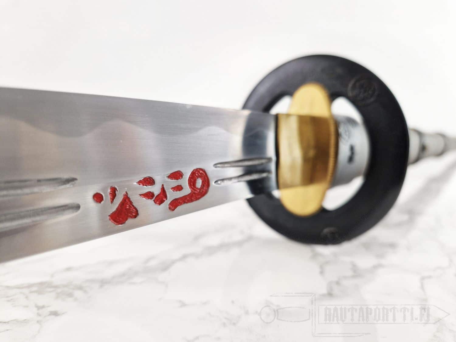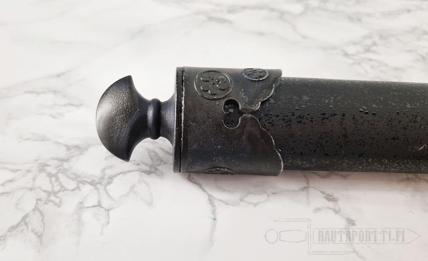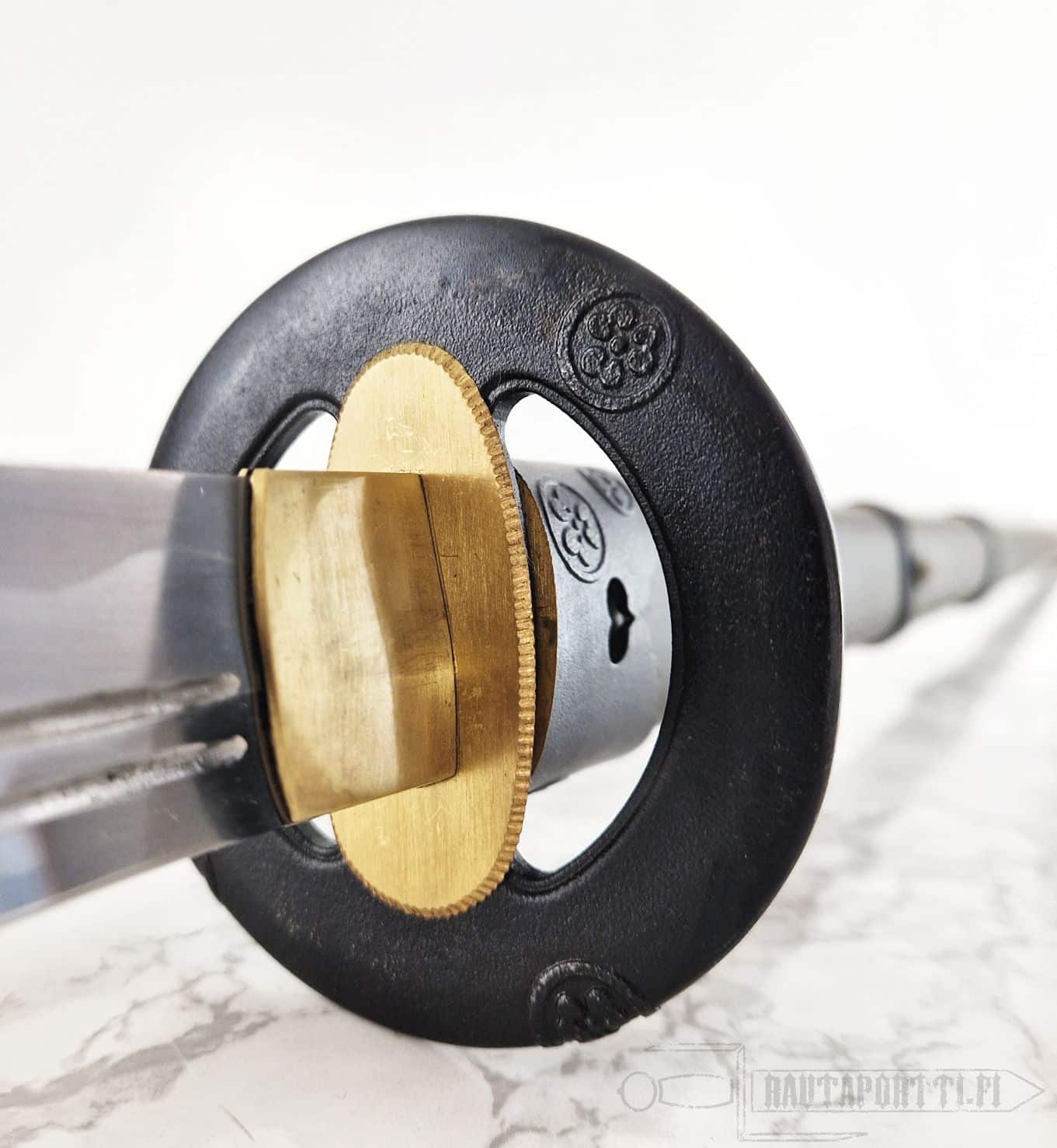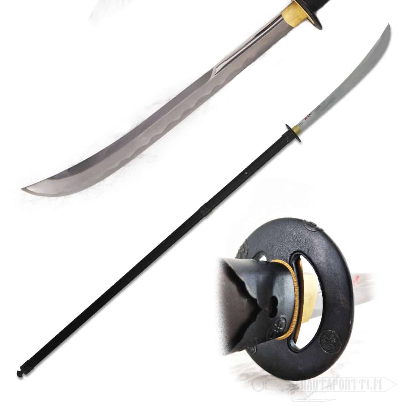 The delicately engravedΒ tsuba features a stylized Japanese silver butterfly motif. The one-piece staff (ebu) is very strong, featuring a traditional tear-drop cross-section for easy recognition of blade orientation and a black non-slip finish for better control of the weapon.