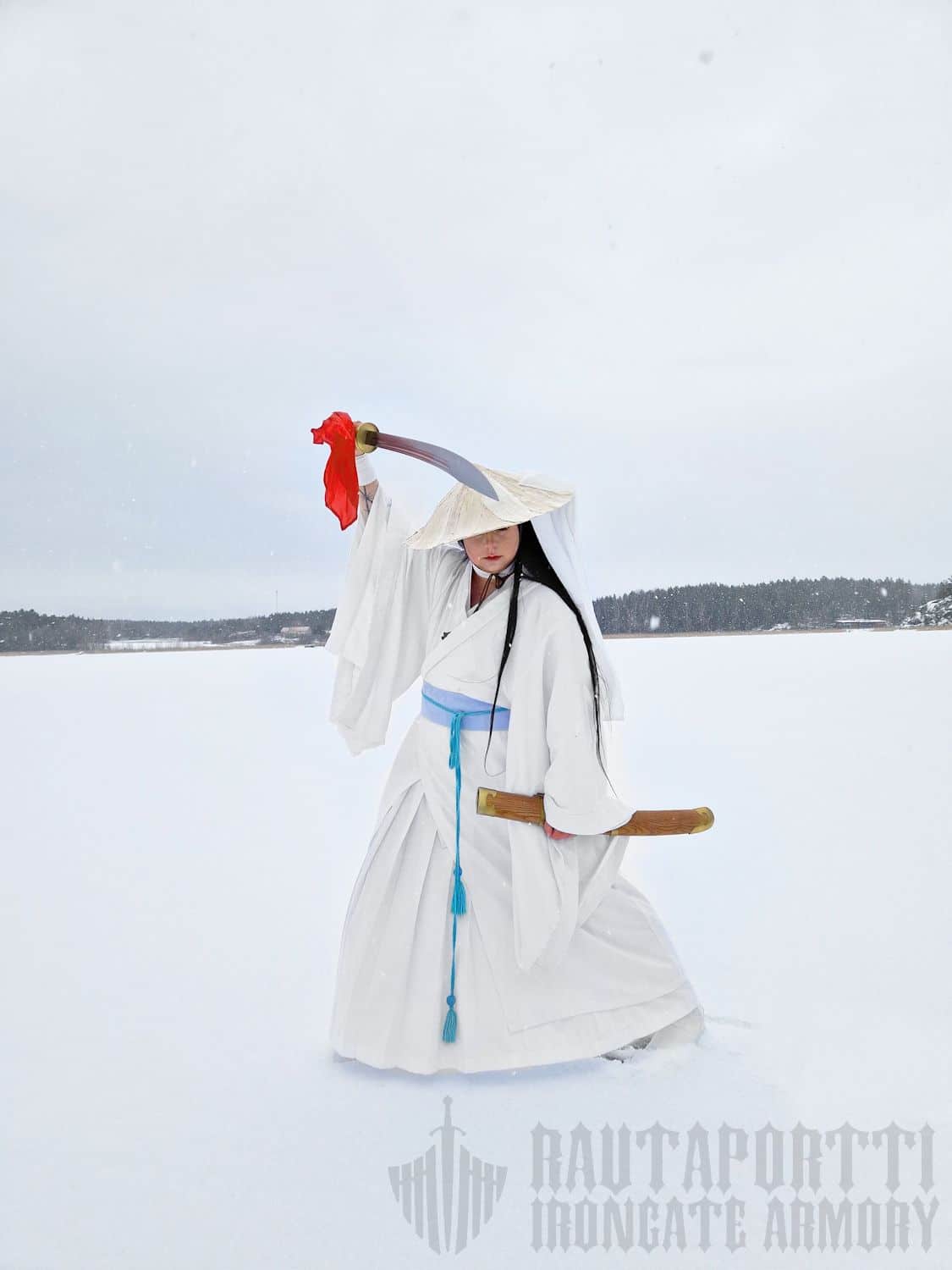 The niuweidao or oxtail dao is a relatively heavy bladed weapon with a characteristic flaring tip. The blade is optimal for cutting soft targets. The Niuweidao first appears during the latter part of the Qing dynasty (from 1644 to 1912). The oxtail dao seems to have been a solely civilian weapon, used by rebels and martial artists, as there is no record or listing of it as an official weapon for the imperial troops. As the introduction of firearms had made armour redundant and rare, soft targets were aplenty for the Boxer rebels and others taking part in the mass civil unrest in China of the 19th and early 20th centuries. Those events would lead to the overthrow of the last Emperor and the end of an empire which lasted for two millennia. The Oxtail Dao is often seen in kung fu movies as an archetypal Chinese saber/broadsword.