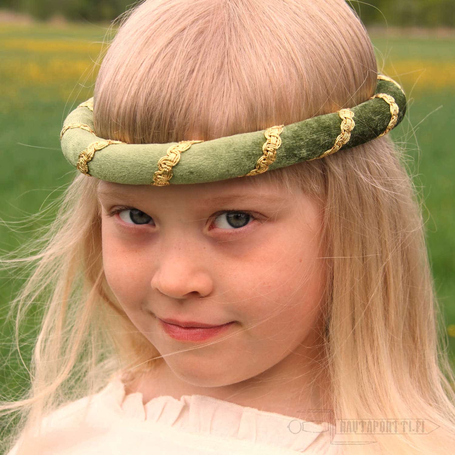 This beautiful maiden wreath consists of soft foam ring covered with velvet-like fabric. A bright ribbon wraps around the headband. A veil made of white tulle fabric and decoration ribbon is attached to the back. The diameter is approximately 14 cm. With this magical maiden wreath you immediately immerse yourself in the world of queens and princesses from the Middle Ages. Whether your princess is hosting a royal tea party or attending a royal ball, this charming accessory adds a touch of regal elegance to every ensemble.