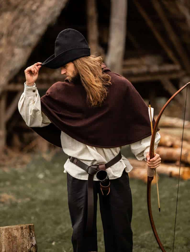 These hats were especially popular on the heads of hunters. The hat design does not prevent or interfere with the use of the bow, so it was a natural easy choice for bow hunters. And of course, the most famous archer, who made this historical medieval headgear famous, is Robin Hood.