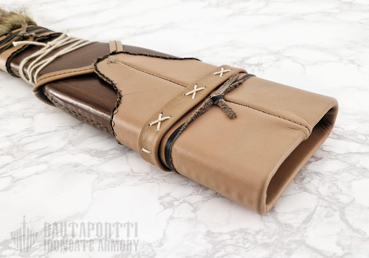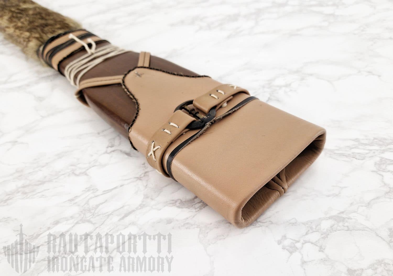 The scabbard is hand sewn from genuine high quality leathers and furs. Made by Marto.