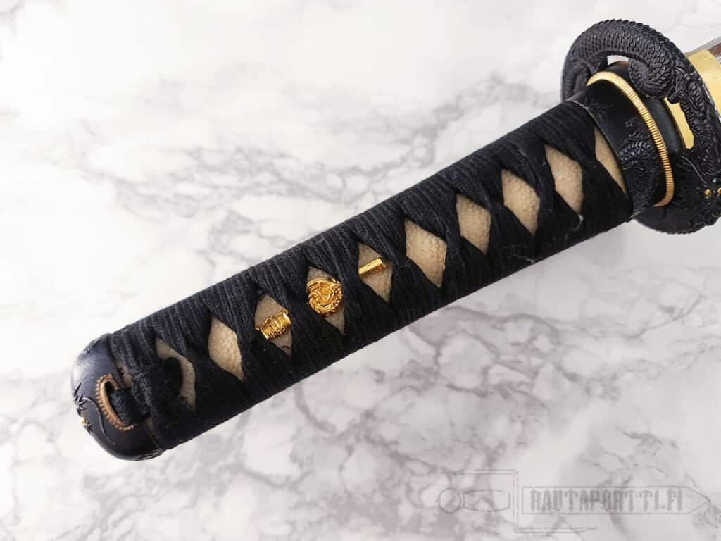 - Premium black Japanese cotton tsuka-ito and sageo on the saya