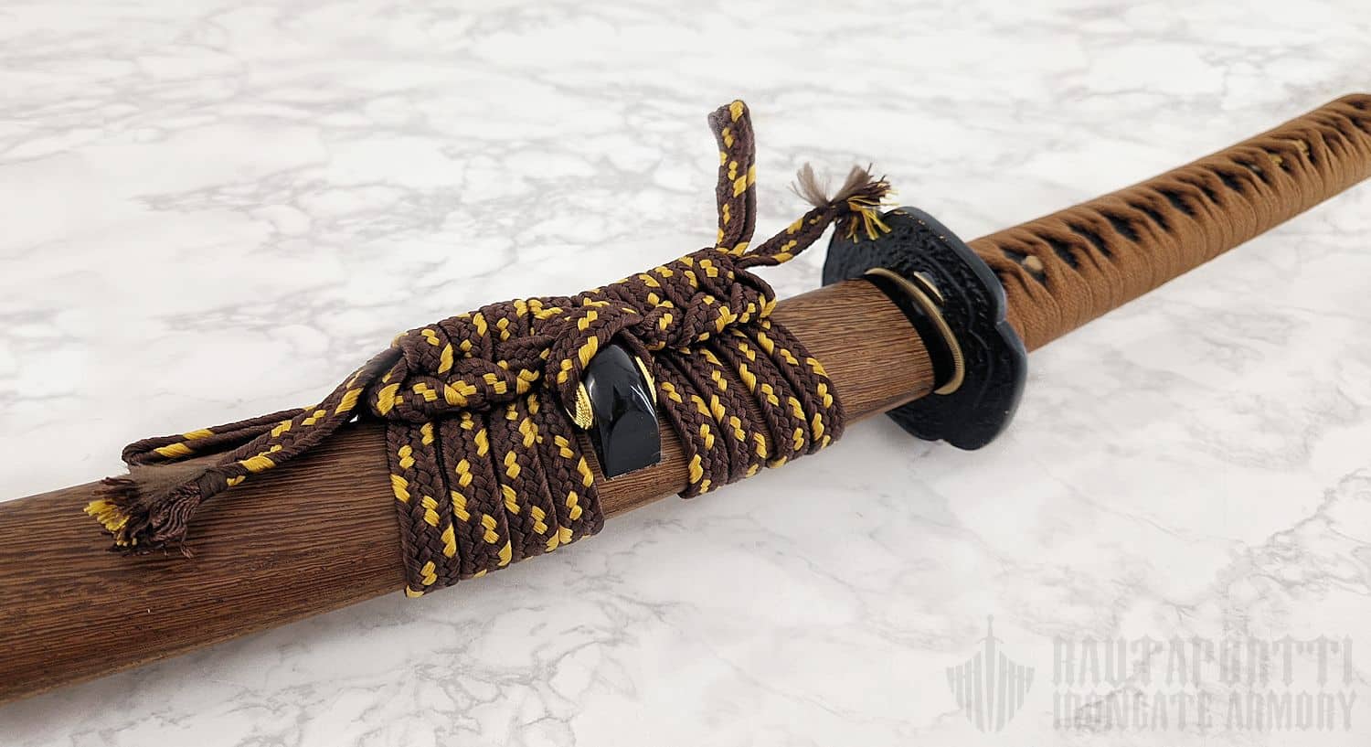 - Beaver-tail inspired hardwood scabbard with silk sageo