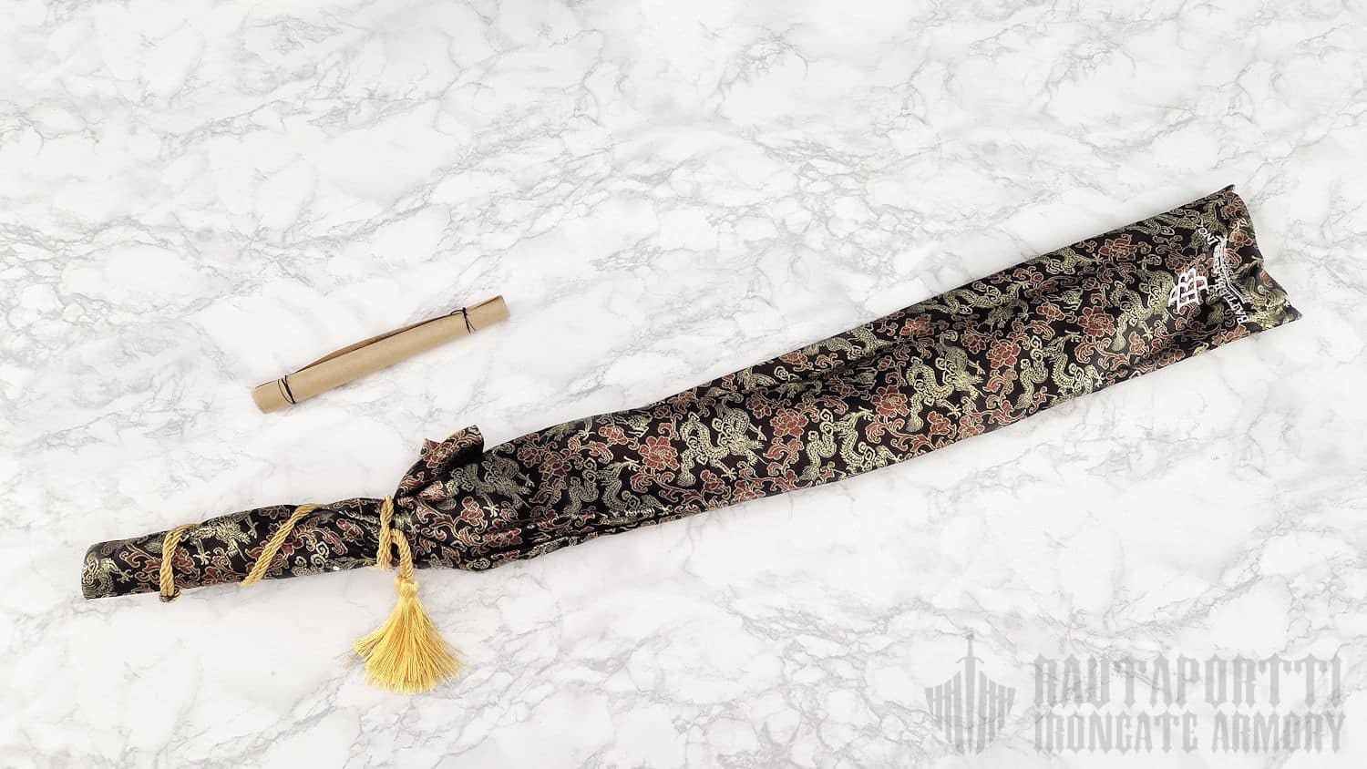 - Scabbard/Saya material: Hardwood - Silk - Buffalo horn