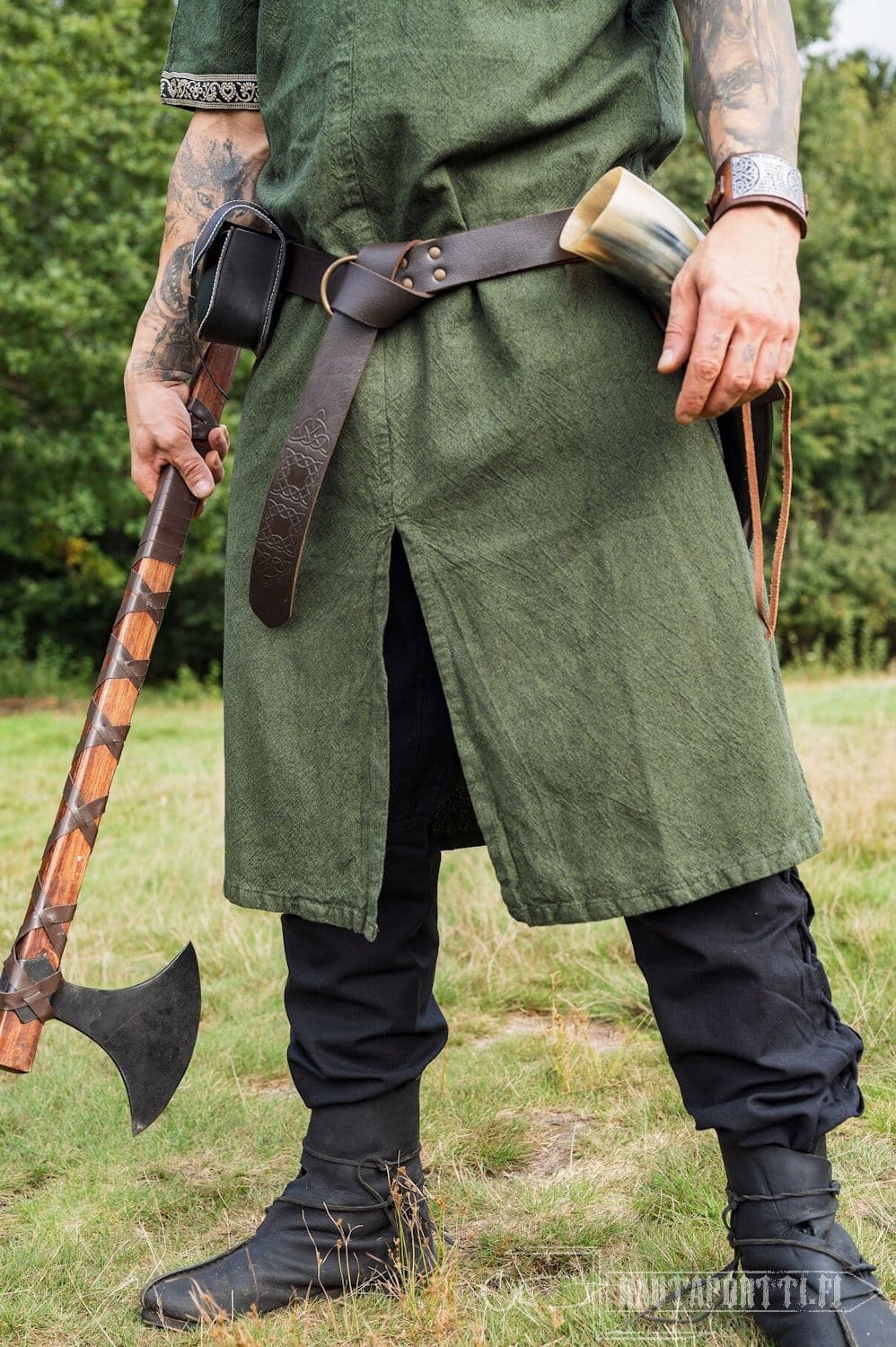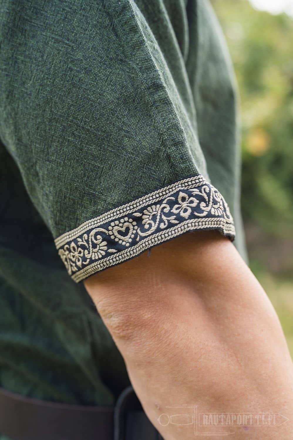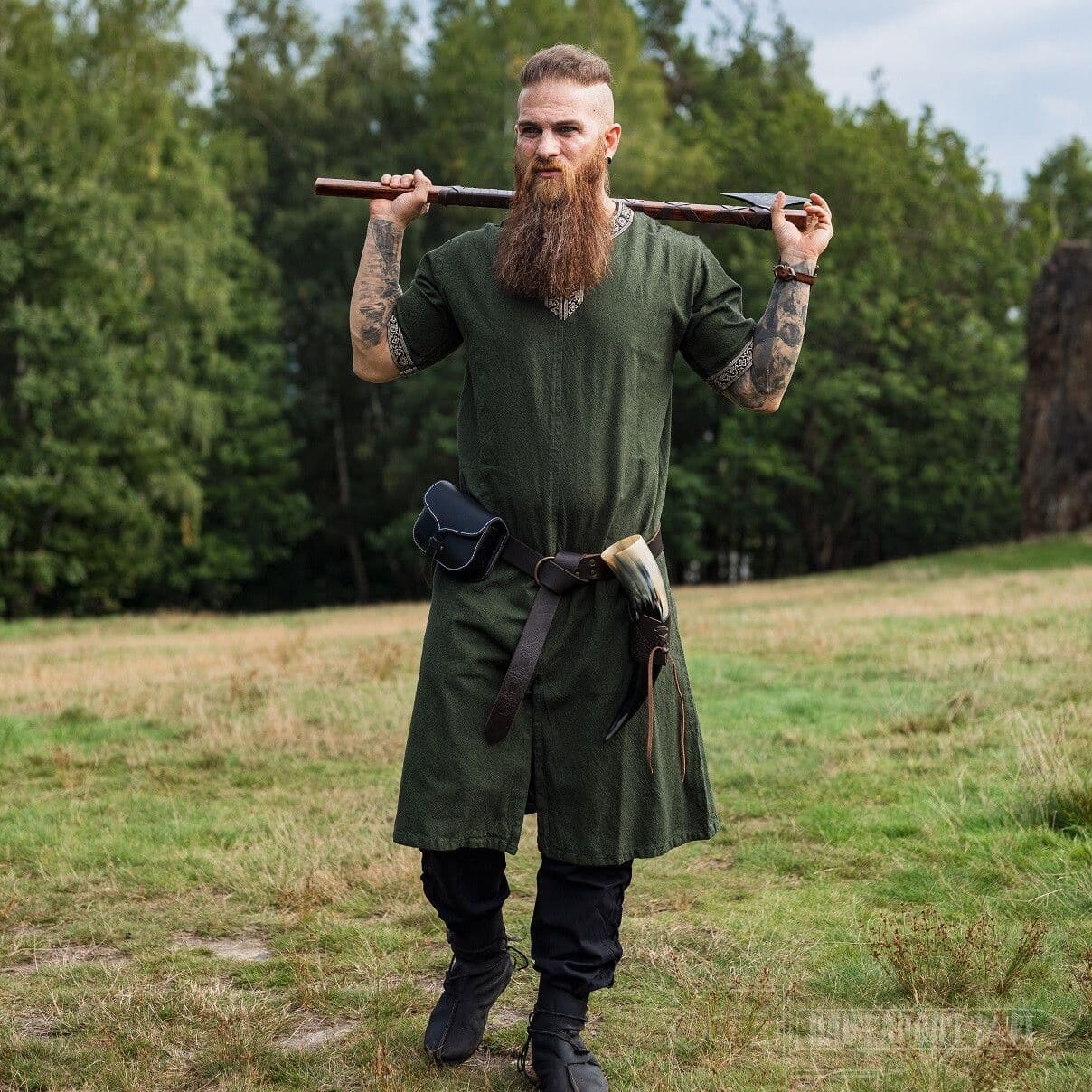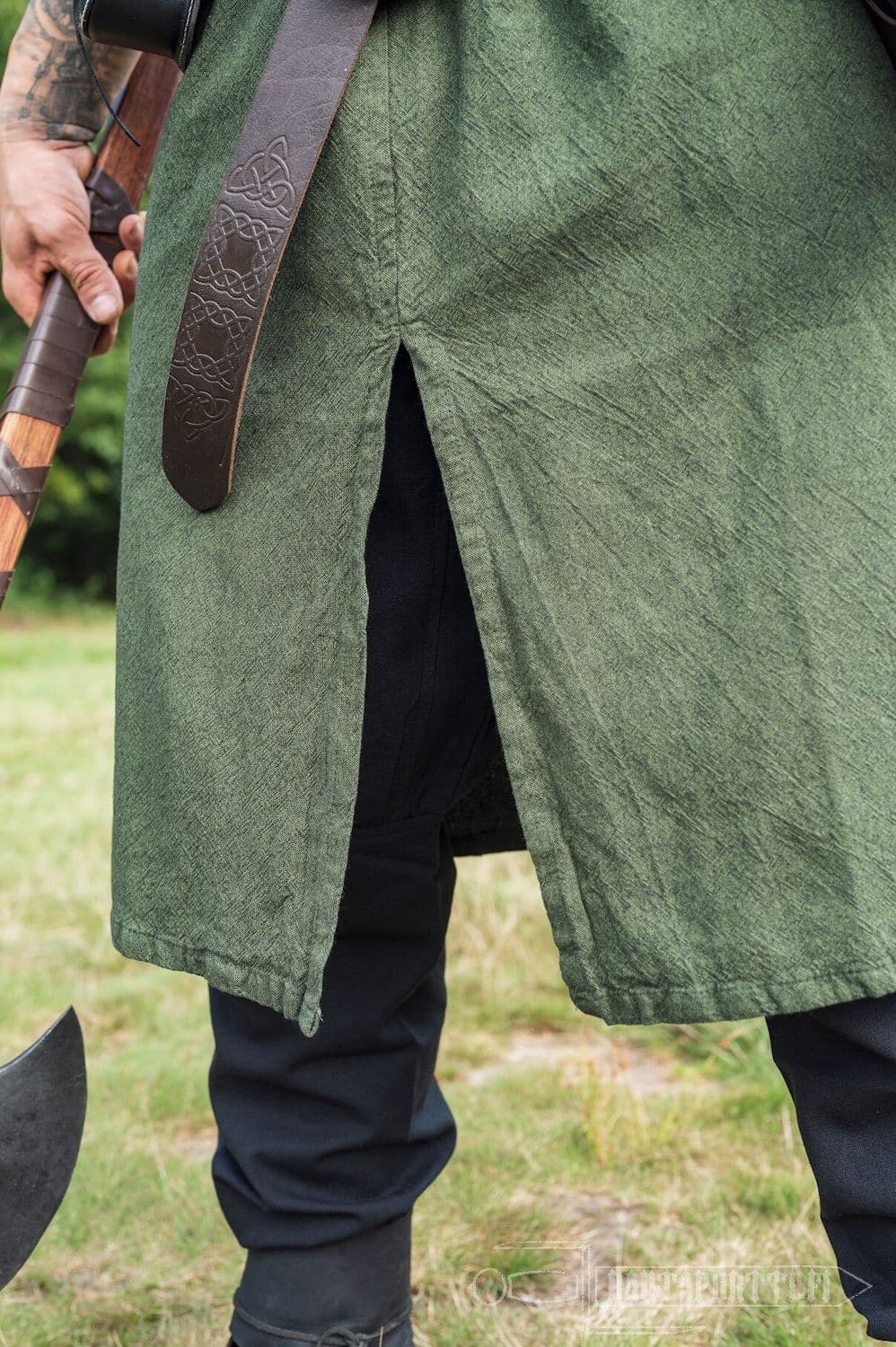 This tunic can be used both men and women. The hem has been modified by adding a slit to the front and back for added movability and space. Especially in the heat of battle free movement of the legs is crucial.