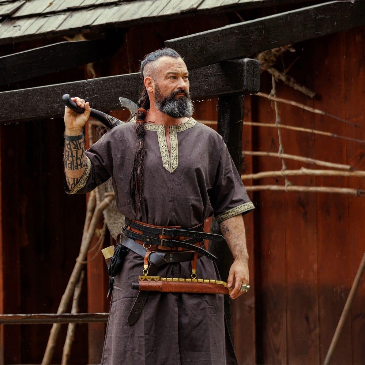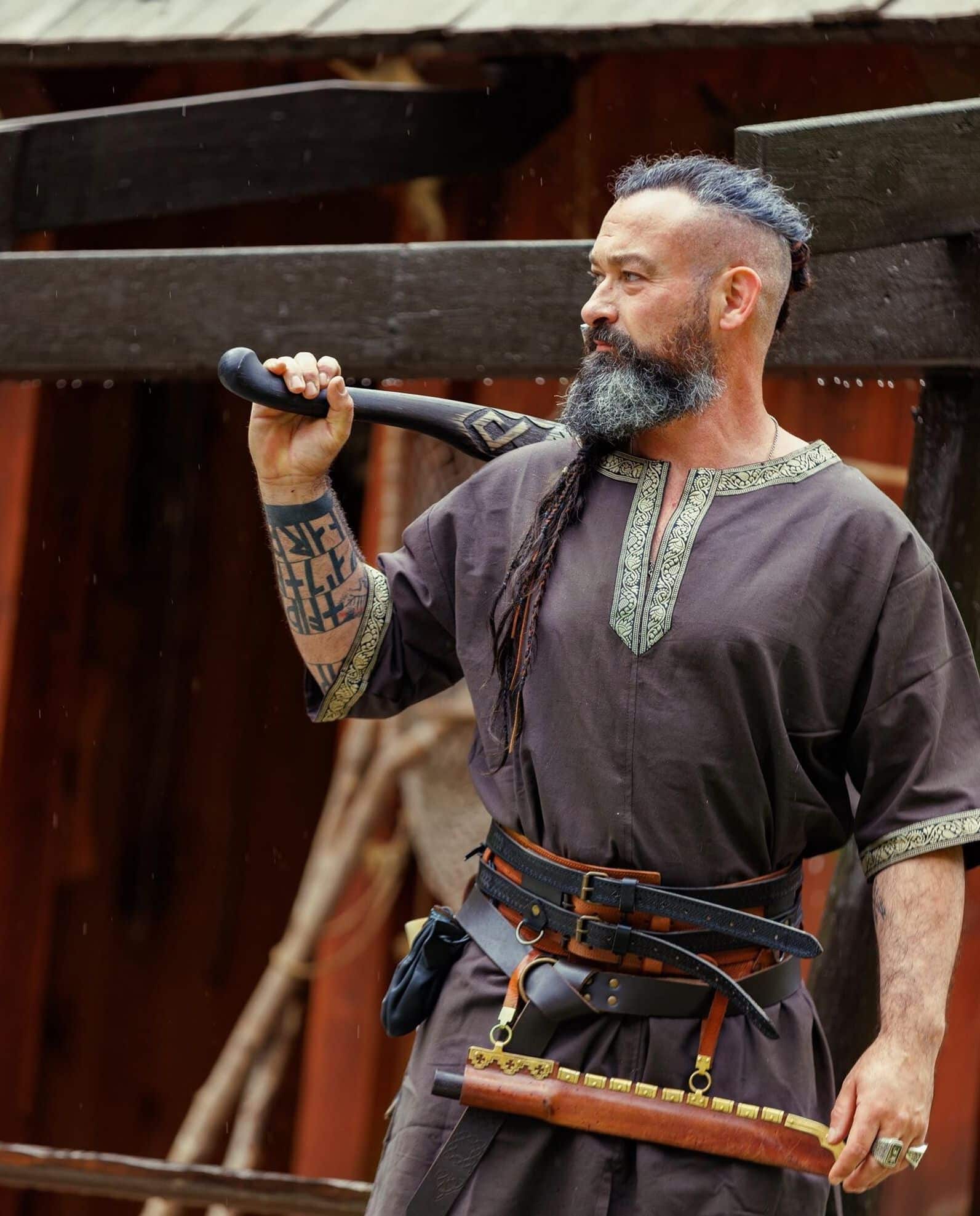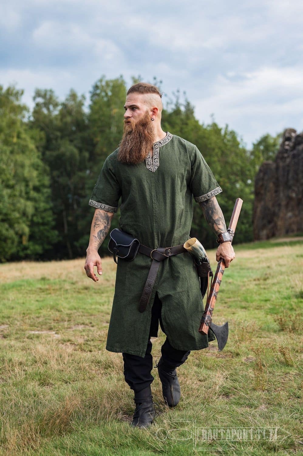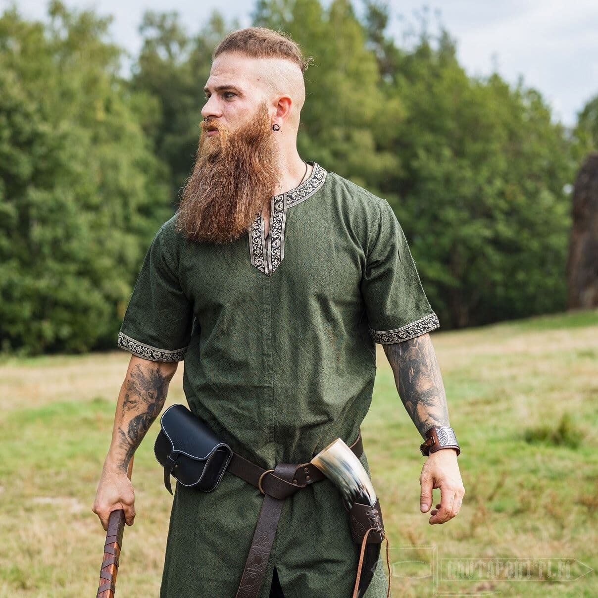 This tunic can be used both men and women. The hem has been modified by adding a slit to the front and back for added movability and space. Especially in the heat of battle free movement of the legs is crucial.