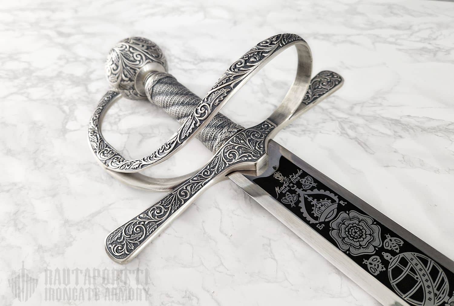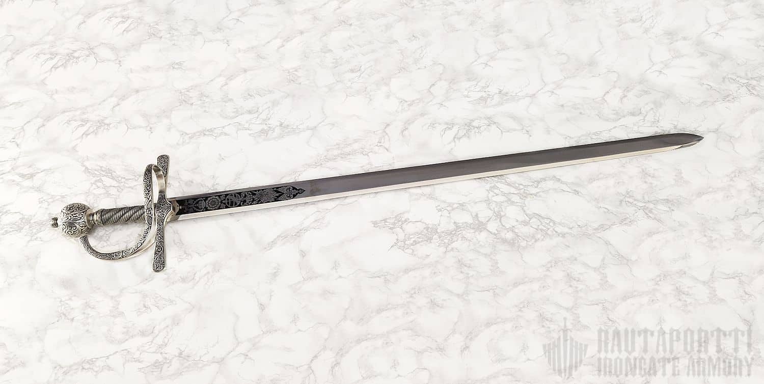 The stainless steel blade is easy to care for, and the sword is ideal as a decoration, as part of a costume, as a collectible and suitable for light cutting practice. The material is not suitable for steel-on-steel fencing or heavy cutting practice. No sheath included.