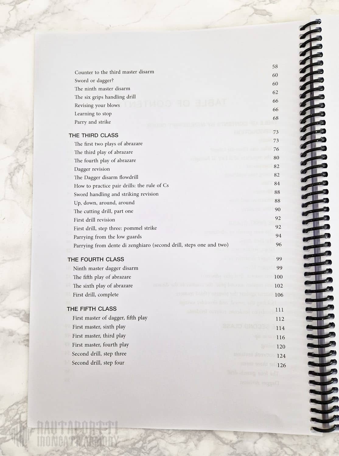 The workbook is organised into eight classes, for you to take at your own pace. Every movement and technique is clearly described, with images from Fiore’s manuscript, and links to video clips showing you the technique in action.