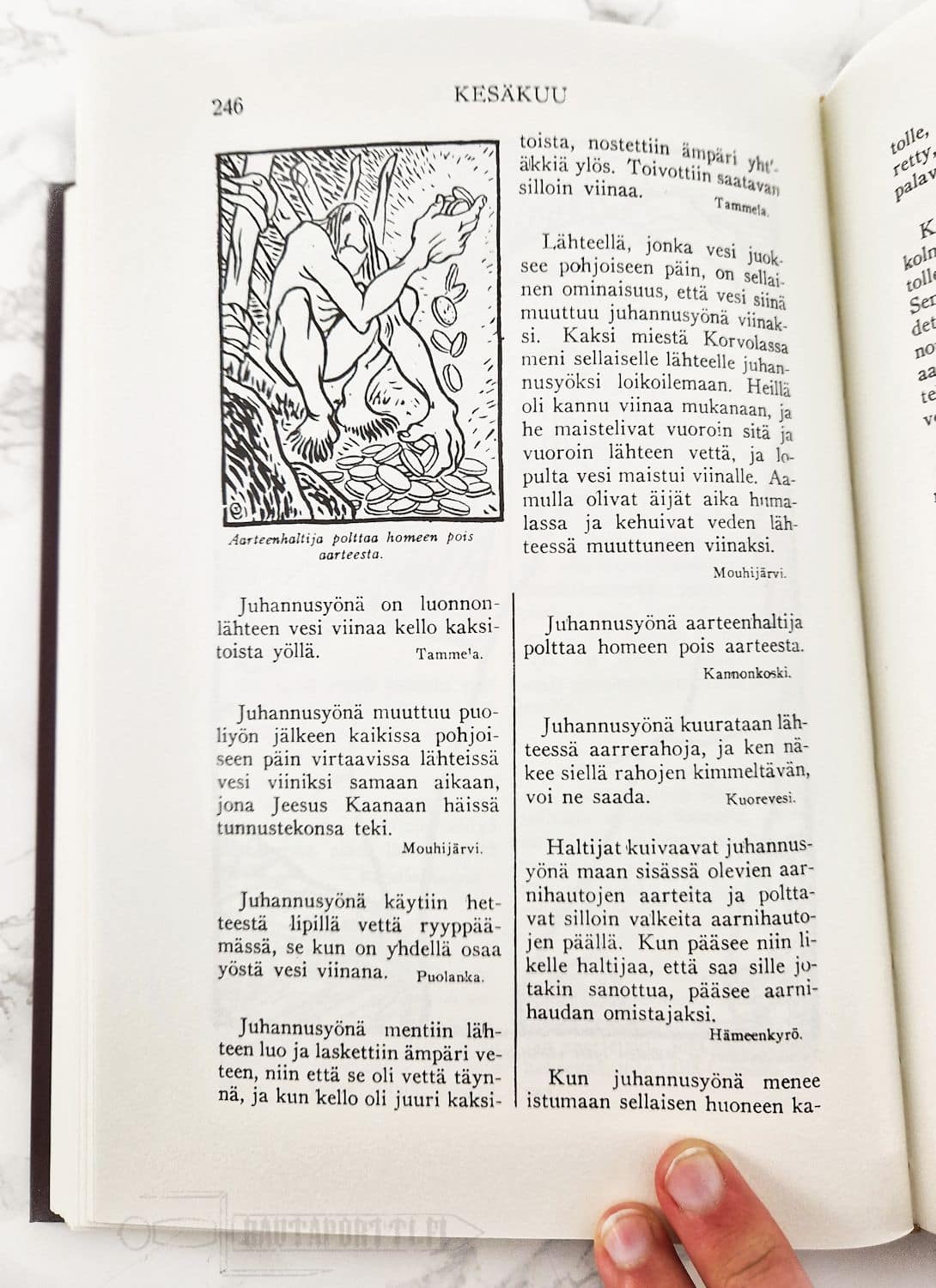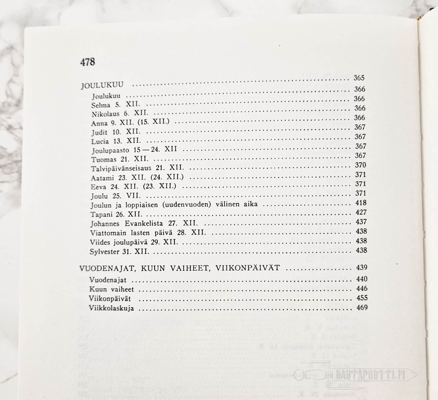 This fascinating handbook, compiled by Jouko Hautala and now in its seventh edition, offers a unique glimpse into rural life in the past. The folk traditions tied to specific days of the year touch nearly every aspect of human activity — from farming and animal husbandry to fishing, hunting, house-building, and even pest control. Many customs also revolved around forecasting the weather and predicting the success of the coming harvest.