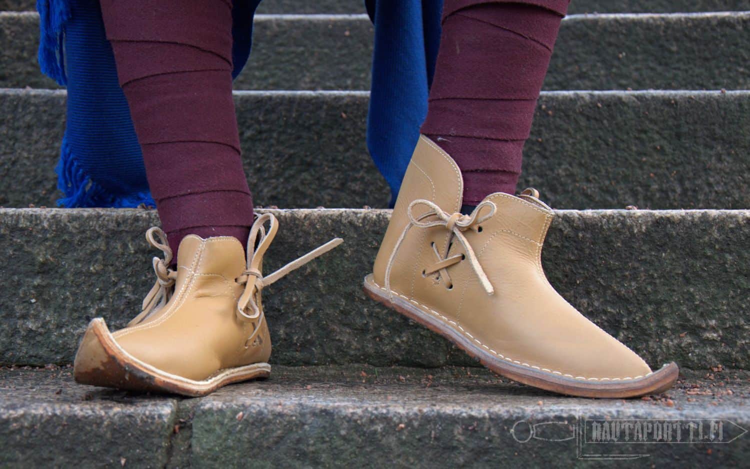 Step into history with these distinctive beak shoes, designed for those who value authenticity and hand crafted items. Our shoes are based on 11th century Skjoldehamn shoes. The Skjoldehamn find, discovered in 1936 in Norway, consists of clothing and accessories dated to approximately 995-1029 CE, including a hood, shirt, trousers, and shoes. The garments are significant for their unique construction techniques and have been linked to both Viking and Sami cultural influences. The original shoes haven't survival fully, so these shoes are our take on the design.