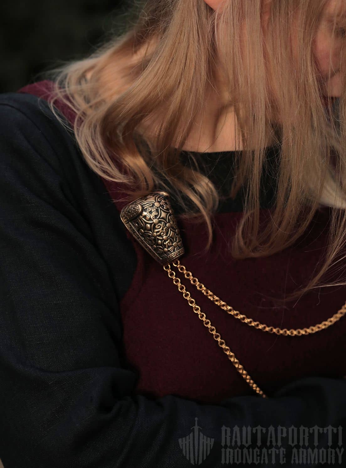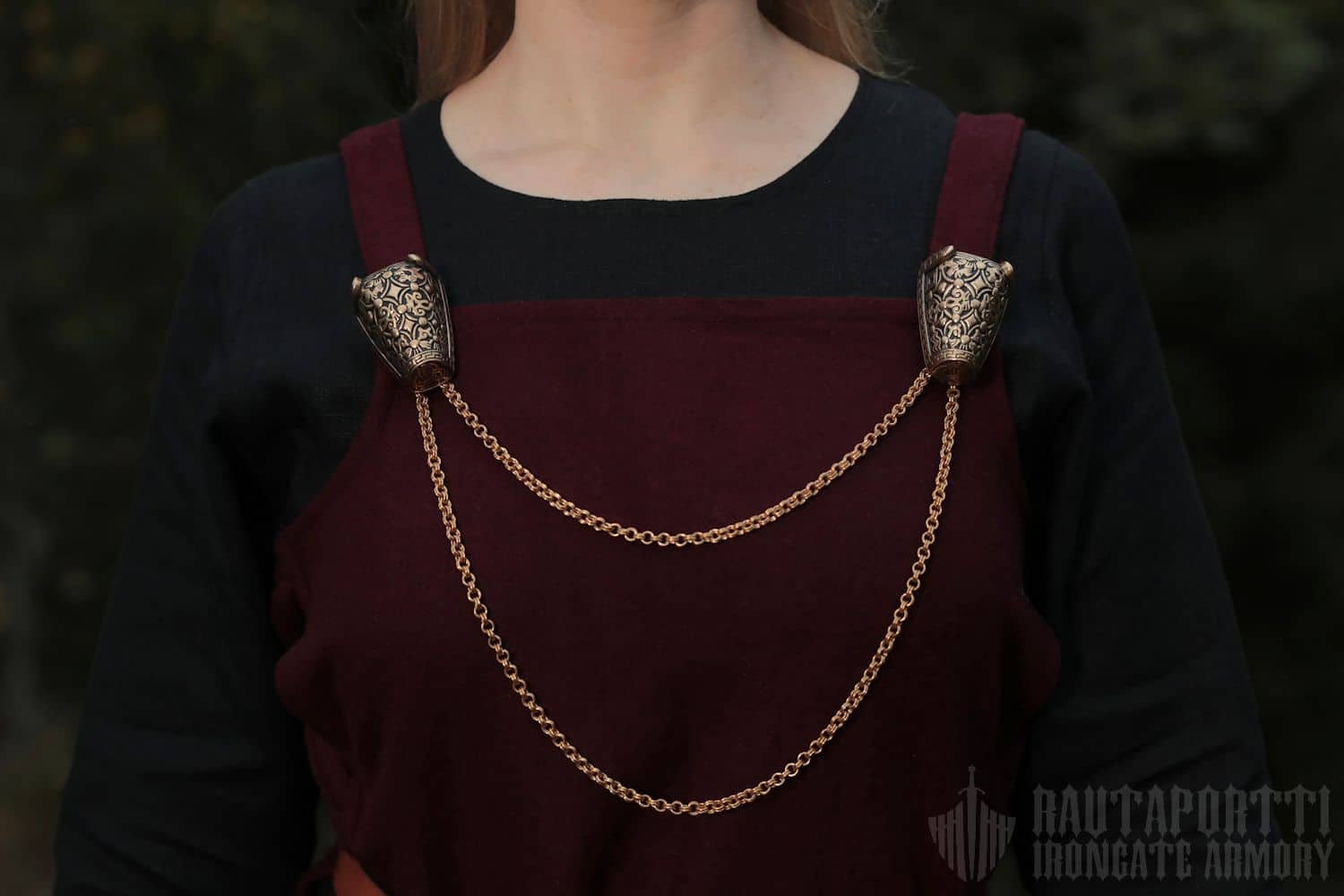 This replica of a Viking double-link chain with hooks is perfect for a historical Viking outfit. It is made of bronze according to historical models found from eastern Sweden and the Baltic.