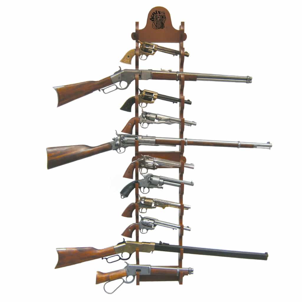 Because the rack has grooves along its entire height, a total of 12 pairs, a wide range of weapons can be easily and quickly displayed, regardless of their size.